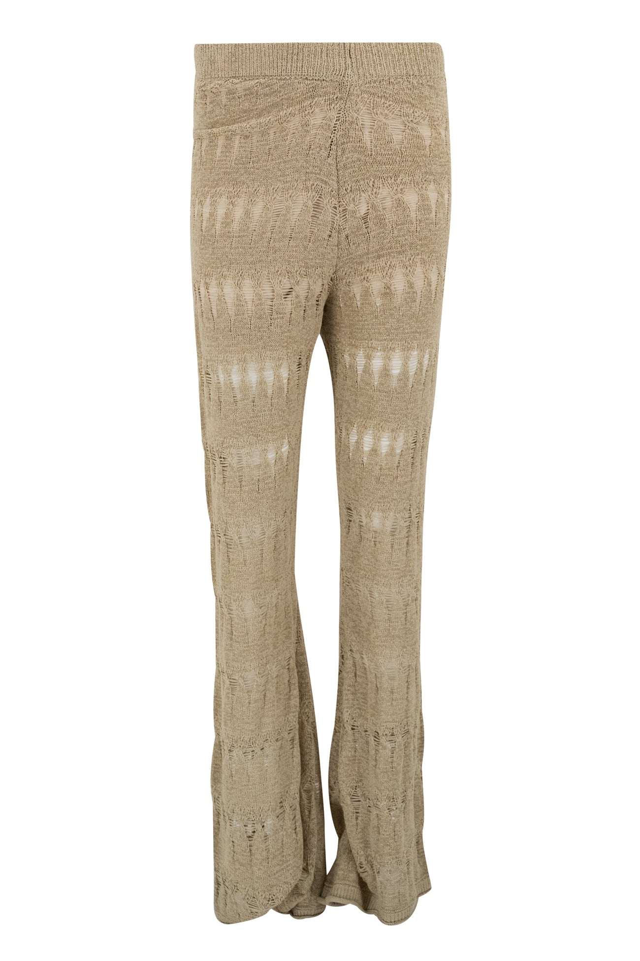 Product gegevens: Fijn gebreid, opengewerkt dessin, elastische band in de heupen, wijd uitlopende pijpen, combineer met Beau Ajour Top