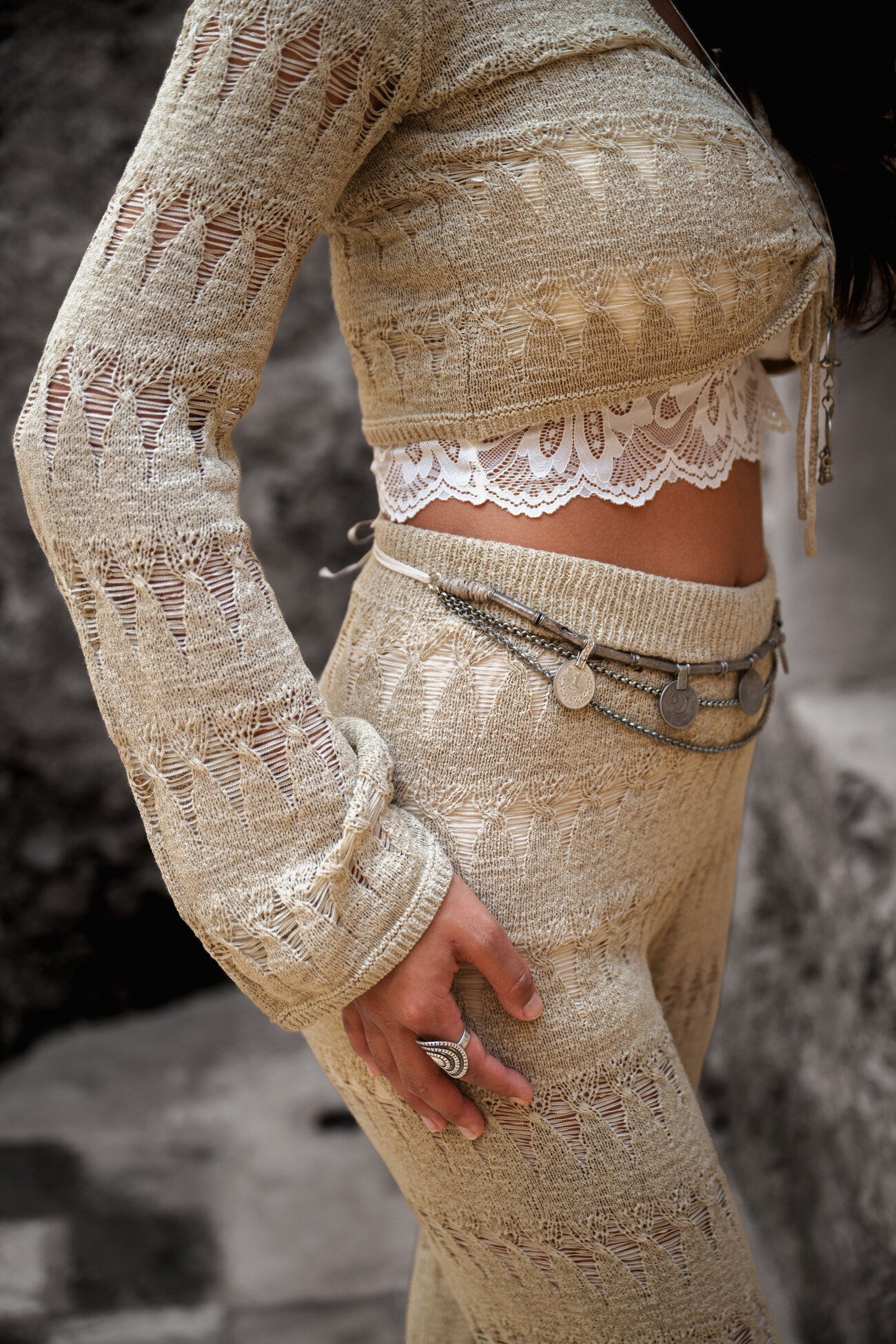Deze Beau Ajour Pants van MOOST Wanted in het sand ademt Ibiza vibes. Fijn gebreid, opengewerkt dessin, elastische band in de heupen, wijd uitlopende pijpen, combineer me Perfect te combineren met slippers, een basic top of een lichte blouse. Nu verkrijgbaar bij ibizamode – ontdek meer op Brands of Ibiza.