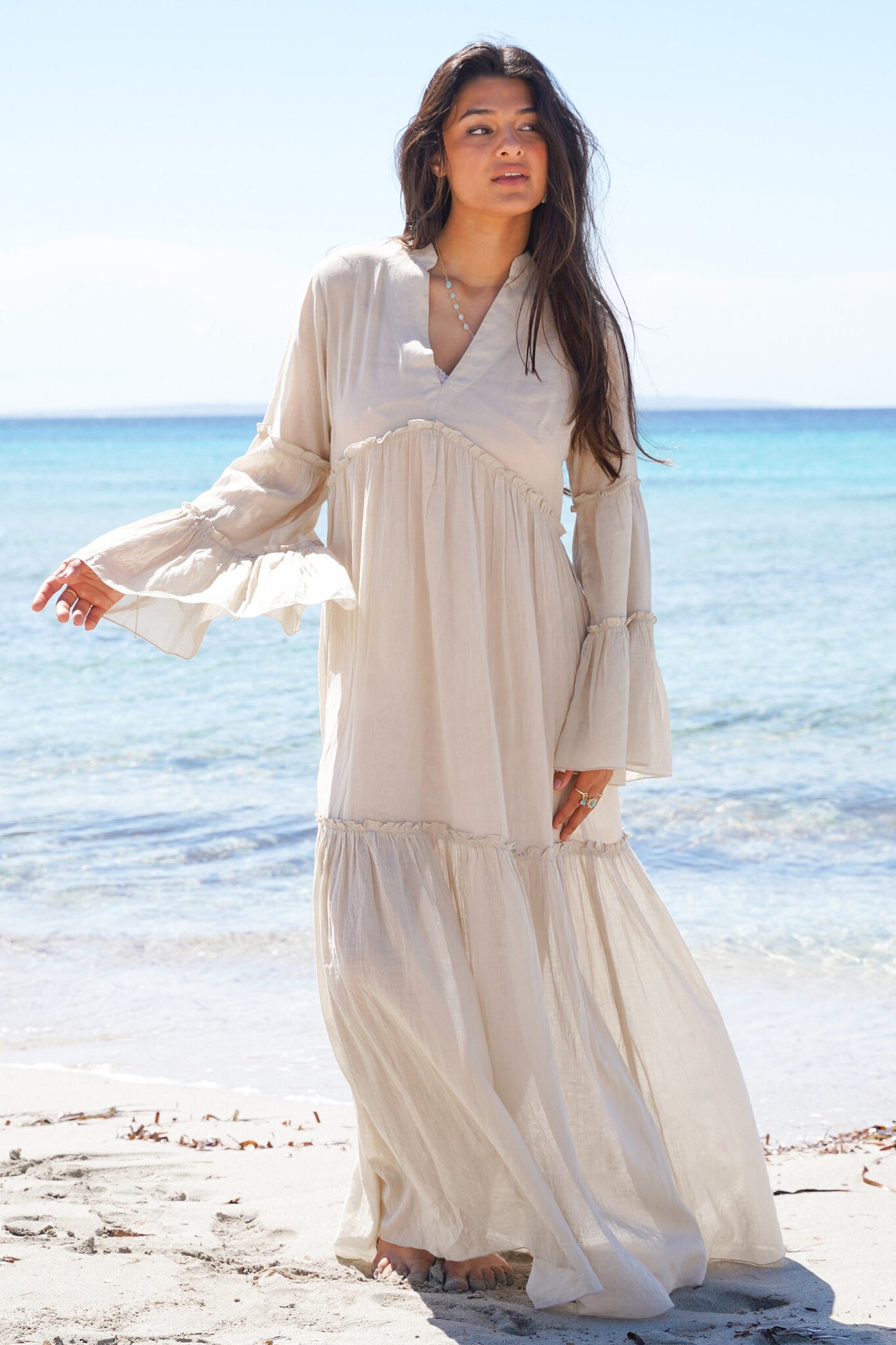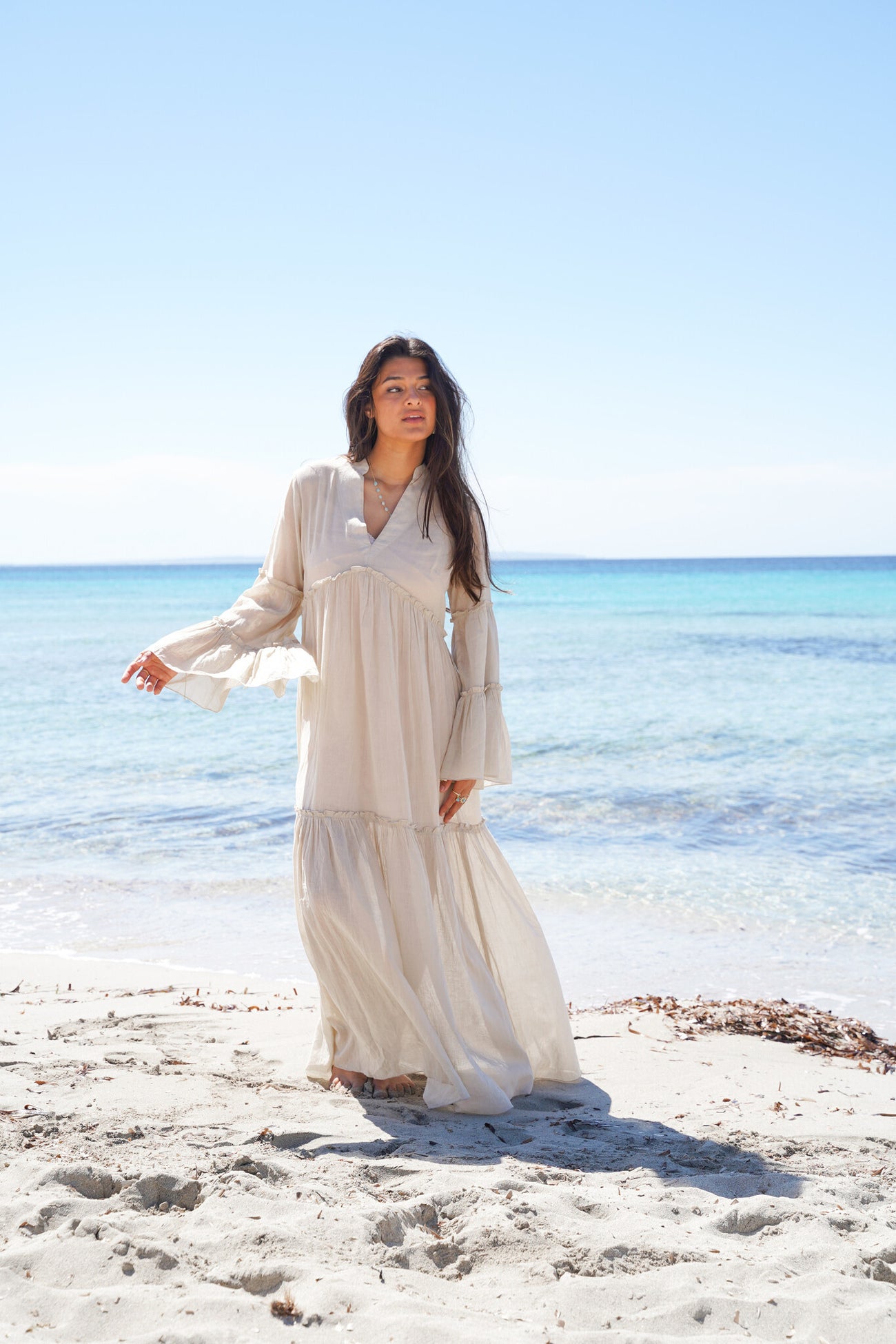 Geef jouw garderobe een update met de Dress Clara Sand, ontworpen voor zonnige dagen. Nu verkrijgbaar bij ibizamode – ontdek meer op Brands of Ibiza.