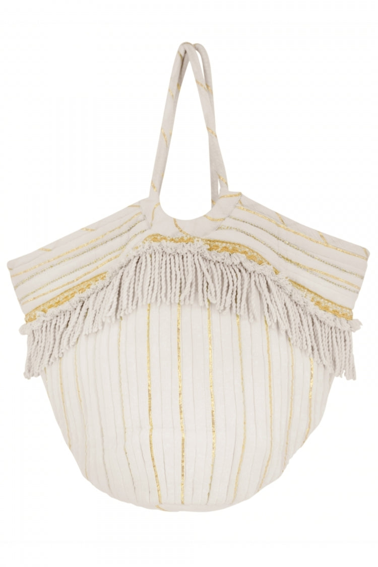 Creëer jouw ultieme zomerse look met de Bag Ana Solana Ivory in de kleur ivory. Tas gemaakt van zachte stof, is bezet met franjeband en heeft lurex garen, heeft een groot vak met k Het natuurlijke materiaal zorgt voor een luchtige feel. Nu verkrijgbaar bij ibizamode – ontdek meer op Brands of Ibiza.