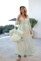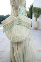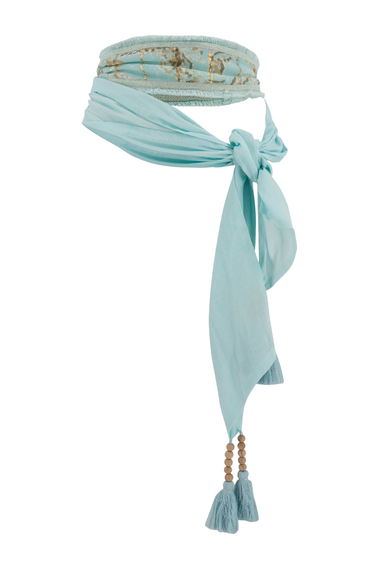 Creëer jouw ultieme zomerse look met de Belt Ese Baroque Mint in de kleur mint. Makkelijk in de taille te knopen, versierd met franjes en houten kralen De luchtige stof voelt zacht aan op je huid. Voeg deze must-have toe aan je zomergarderobe.
