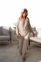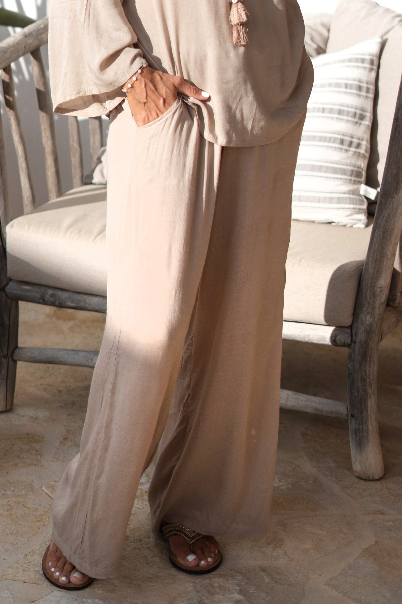 Deze pantalon mega jazz taupe is perfect voor zomerse dagen – licht, stijlvol en bohemian. Shop jouw favoriet vandaag nog online bij brands of ibiza!