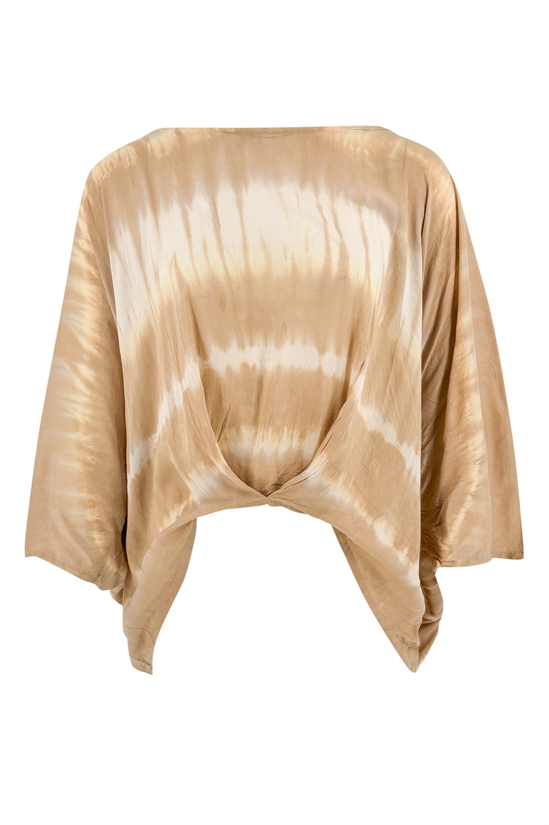 Product gegevens: Top met lange wijde mouwen, aan de voorkant een gevouwen plooi, zomerse tie dye print. Let op: de print is op elk artikel verschillend door de speciale verftechniek