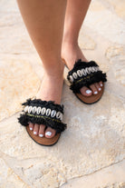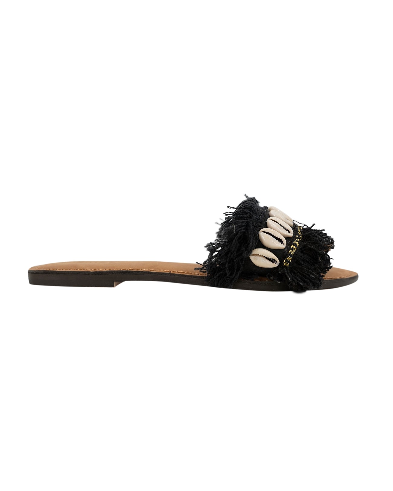 Deze Slipper Bohé Dream Black van ibzmode in het black ademt Ibiza vibes. Heeft details van gouden lurex, is bezet met schelpjes en franjes Let op: Je koopt de kleur van de p Nu verkrijgbaar bij ibizamode – ontdek meer op Brands of Ibiza.