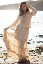 Product gegevens: Heeft details van gouden lurex, is bezet met schelpjes en franjes Let op: Je koopt de kleur van de productfoto's
