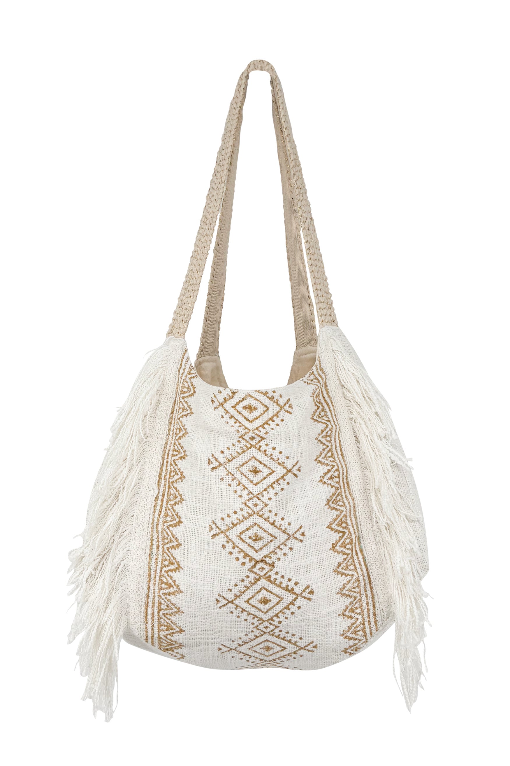 Creëer jouw ultieme zomerse look met de Bag Mala Scorva White in de kleur white. Grote tas, gaat dicht met de knoop, heeft hengsels met goudkleurige lurex, hand gestempeld dessin, h De luchtige stof voelt zacht aan op je huid. Shop nu bij ibizamode en straal deze zomer in stijl.