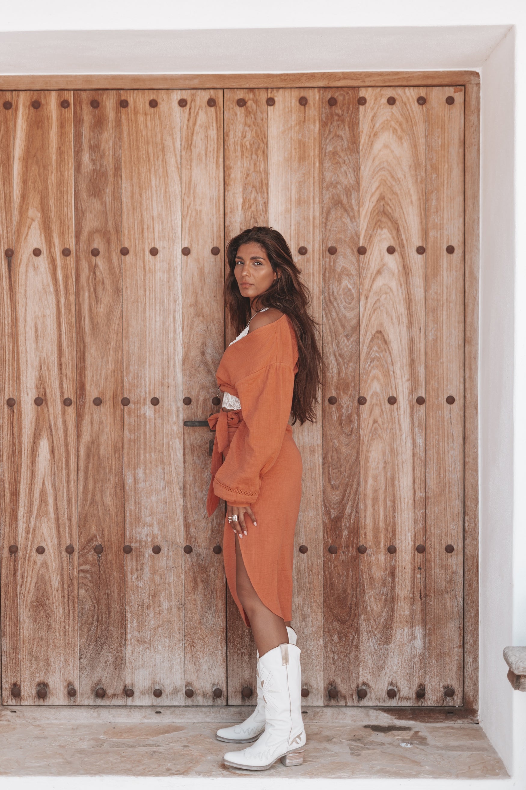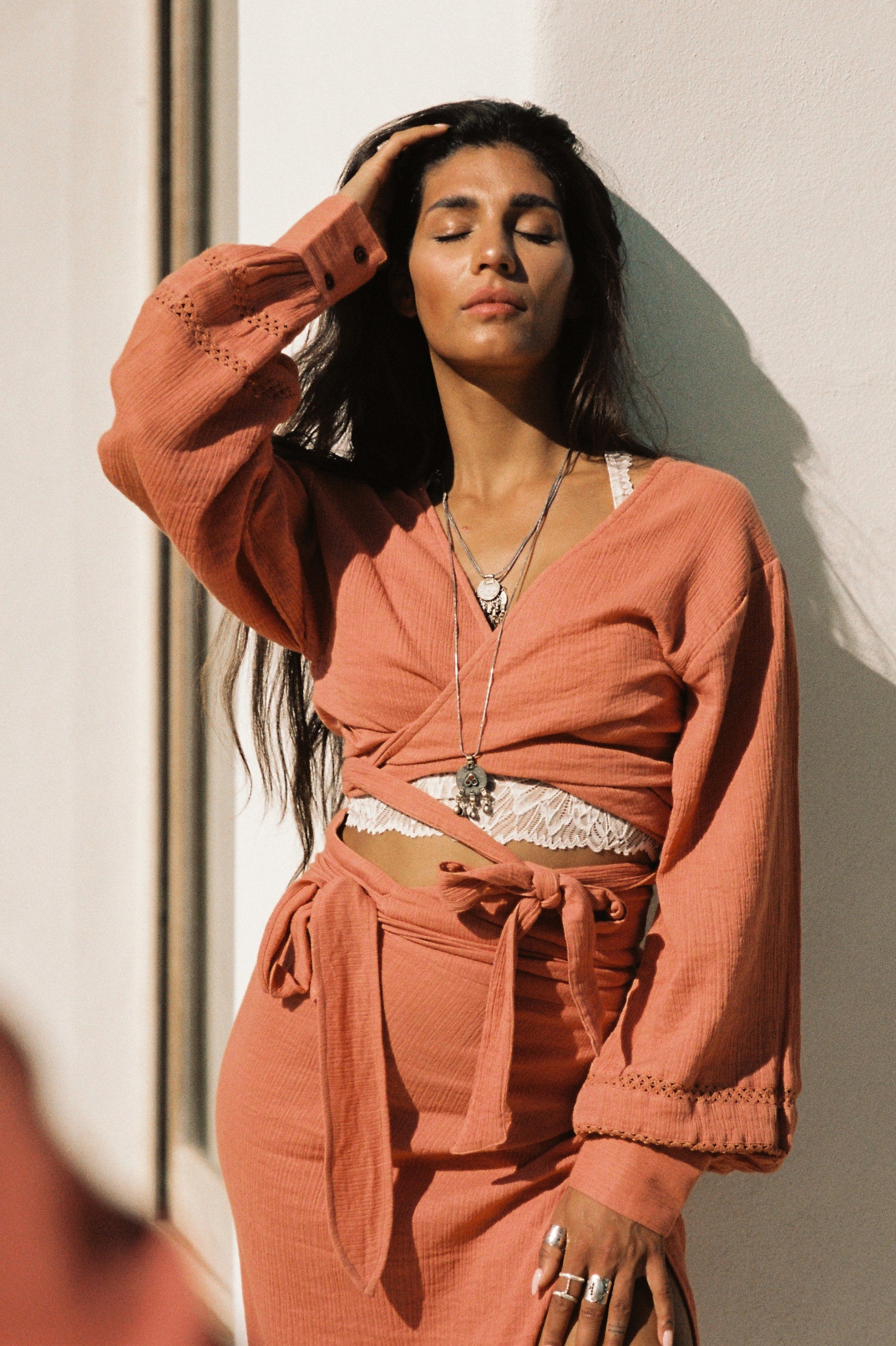 Deze Evelin Wrap Skirt Terra van MOOST Wanted in het terra ademt Ibiza vibes. Wikkelrok gemaakt van katoen te strikken in de taille Draag het met je favoriete accessoires voor een echte brands of Ibiza-look. Shop nu bij ibizamode en straal deze zomer in stijl.