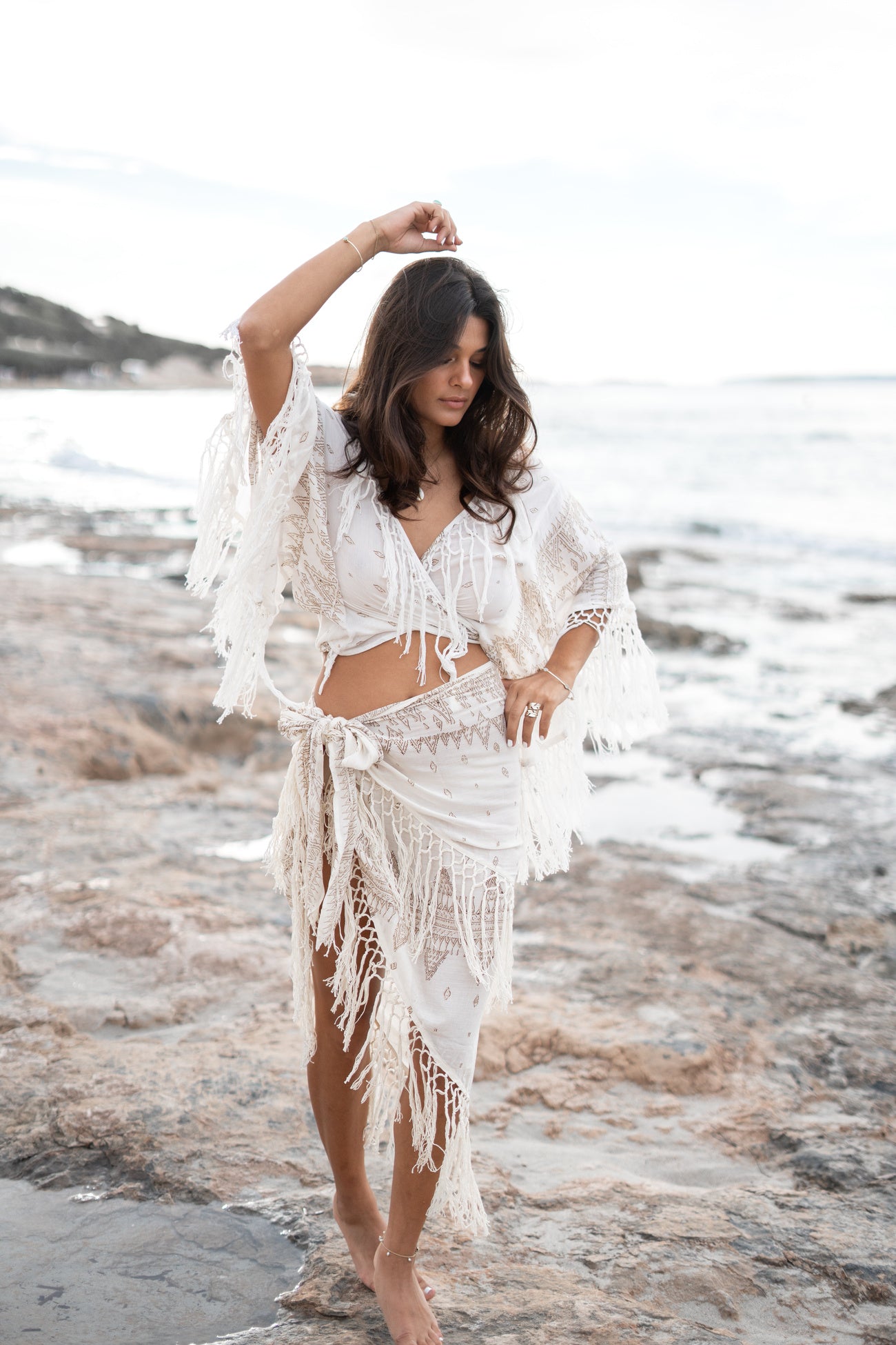 Met de Pareo Estilo Nomada Ivory van ibzmode ben je klaar voor elke summer getaway. Gemaakt van 100% rayon gauze, licht en comfortabel voor warme dagen. Bestel snel en geniet van de bohemian lifestyle, elke dag opnieuw.
