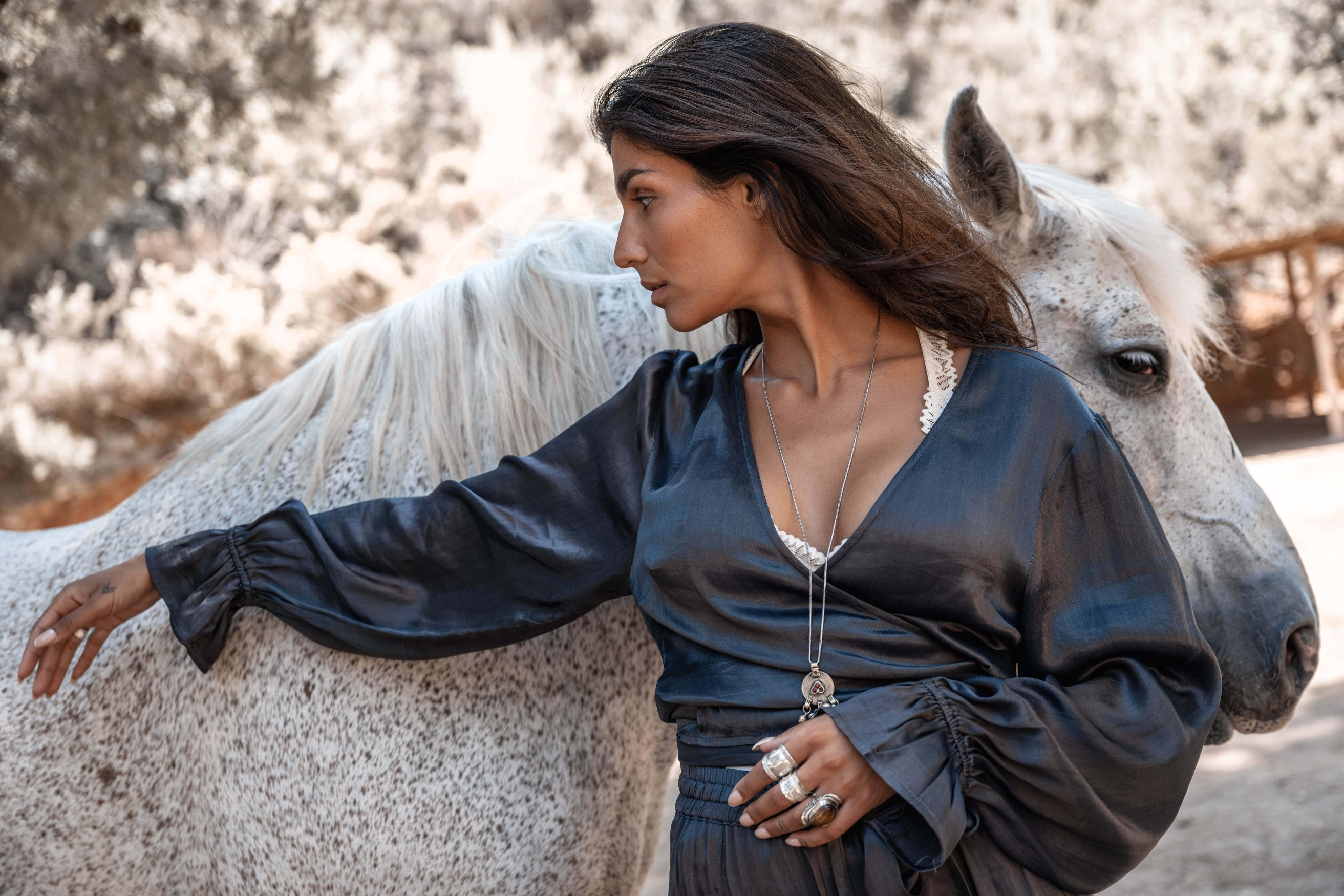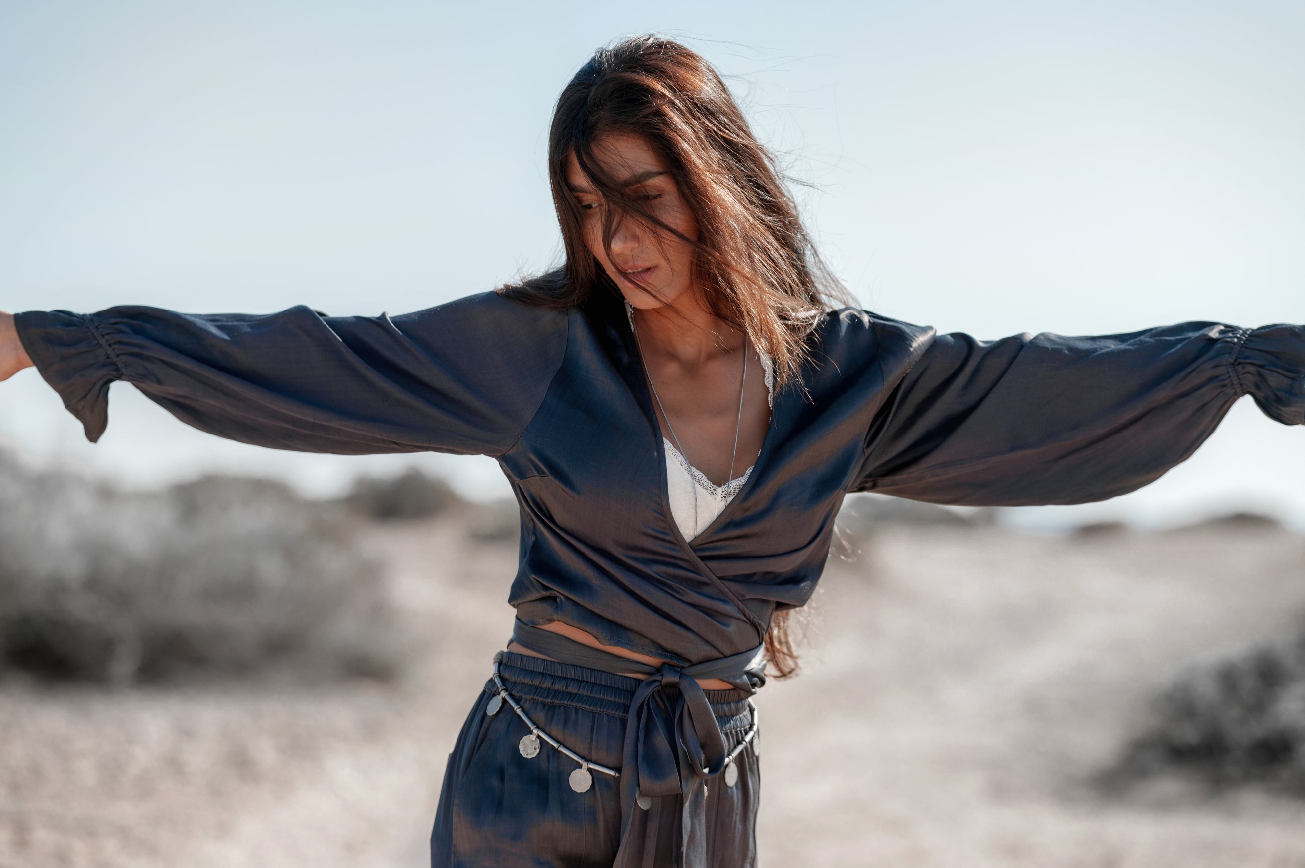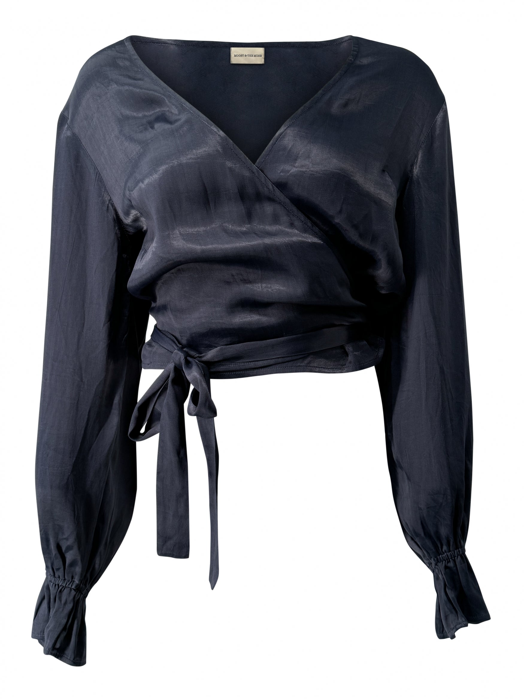 Creëer jouw ultieme zomerse look met de Noor satin wrap top in de kleur dark blue. De luchtige stof voelt zacht aan op je huid. Bestel snel en geniet van de bohemian lifestyle, elke dag opnieuw.