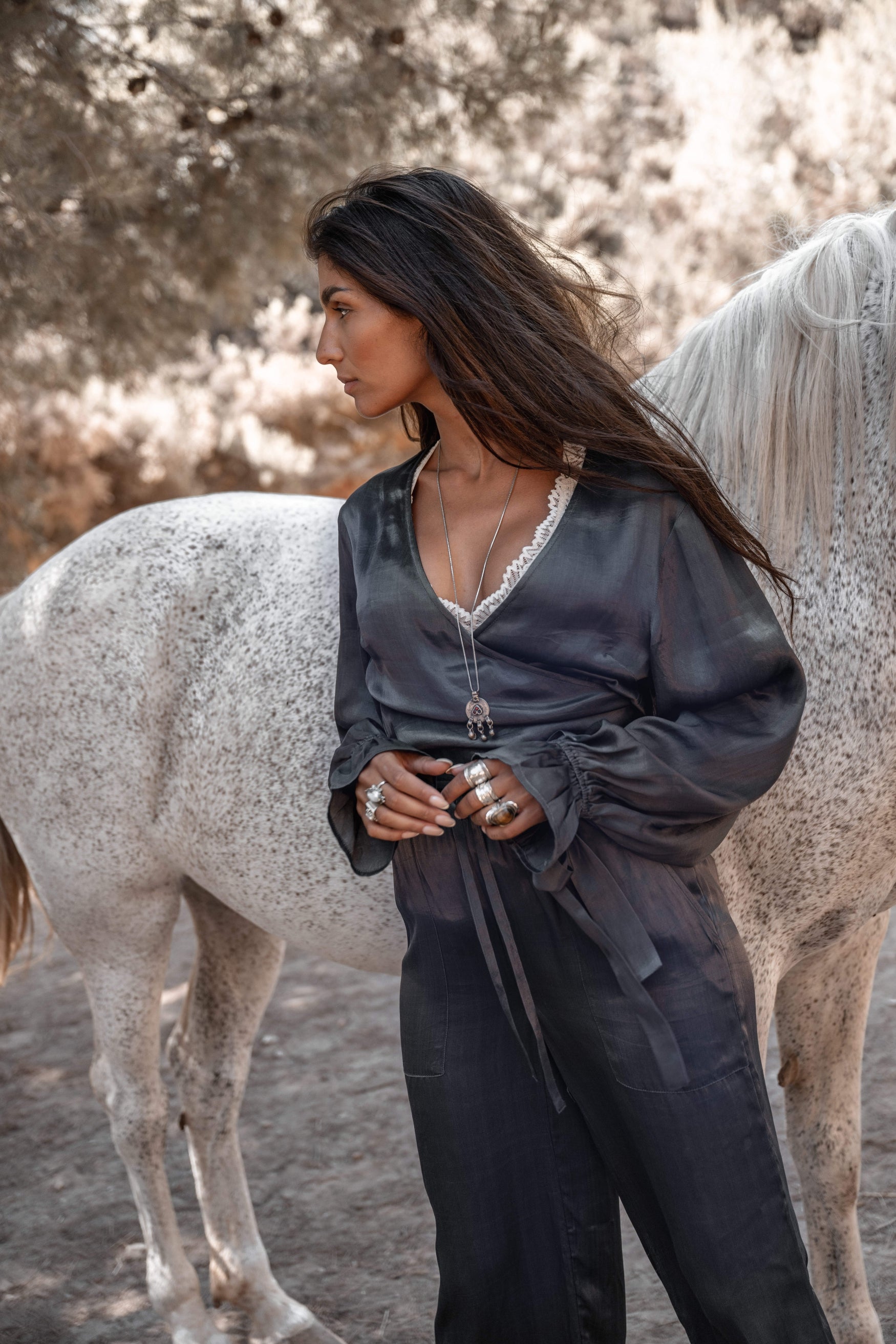 Noor satin wrap top