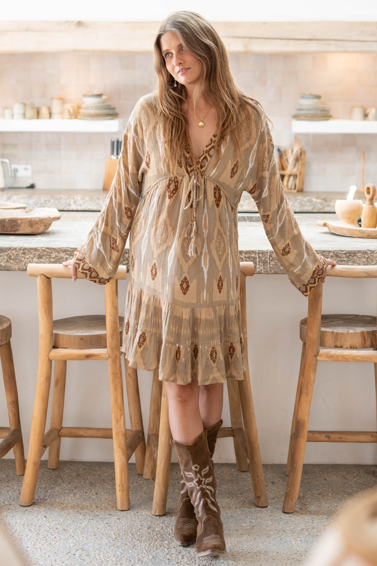 Das kurze Kleid Lisa Estampado Ecru ist ein Must-have für die Saison Herbst/Winter 2025. Dieses wunderschöne kurze Kleid hat ein einzigartiges ecrufarbenes Muster, das einen trendigen und stilvollen Look kreiert. Mit seiner schmeichelhaften Passform und dem bequemen Material ist dieses Kleid perfekt für jede Gelegenheit, vom lässigen Tagesausflug bis zum schicken Abend. Füge dieses Kleid deiner Kleiderkollektion hinzu, um ein müheloses und modisches Statement abzugeben.