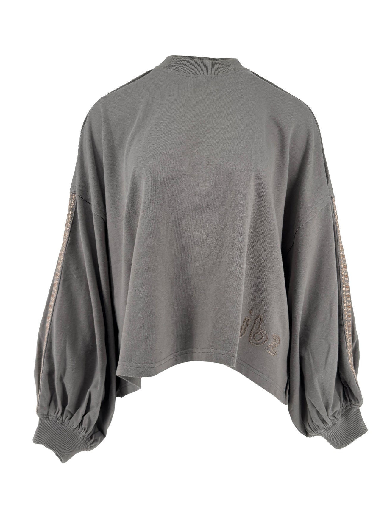 Product gegevens: Wijde oversized sweater met volume en borduursels op de mouwen