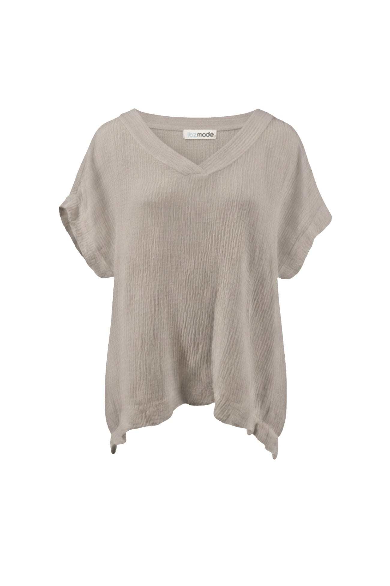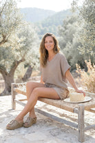Außerdem ist Taupe eine Farbe, die leicht zu kombinieren ist. Dieses Ibiza-T-Shirt lässt sich mühelos mit hellen und dunklen Tönen kombinieren. Kombiniere es mit Leinen oder Baumwolle für einen ruhigen Resort-Look.
