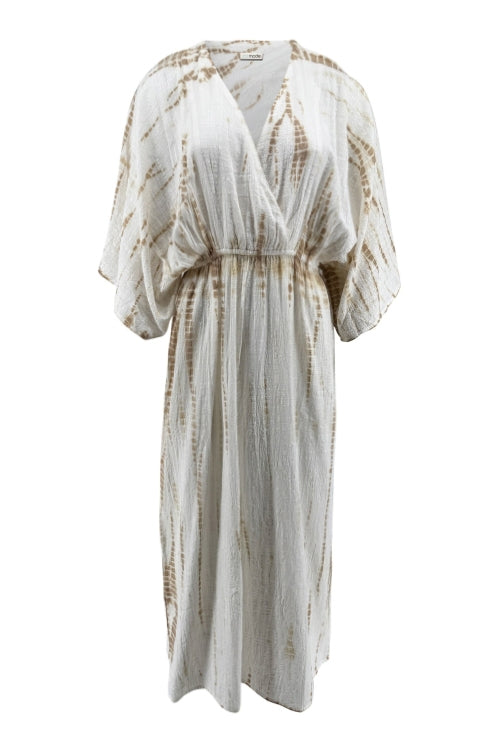 Das Kleid Malia Sera ist Teil der Sand Stories Kollektion. Dieses Tie-Dye-Kleid strahlt Ruhe, Sanftheit und natürliche Eleganz aus. Der organische Tie-Dye-Druck in Taupe und Elfenbein schafft einen raffinierten Resort-Look. Dadurch fühlt sich dieses Kleid sofort für entspannte Urlaubstage und lange Sommerabende geeignet.