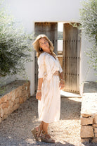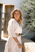Zunächst einmal sticht das Material hervor. Das Kleid besteht aus 100% Baumwolle und fühlt sich atmungsaktiv und leicht auf der Haut an. Die Musselinstruktur trägt sich angenehm und bewegt sich geschmeidig mit dir. So bleibt das Kleid auch bei warmen Temperaturen bequem. Das macht das Malia Sera ideal für Strandtage und Beach Club Momente.