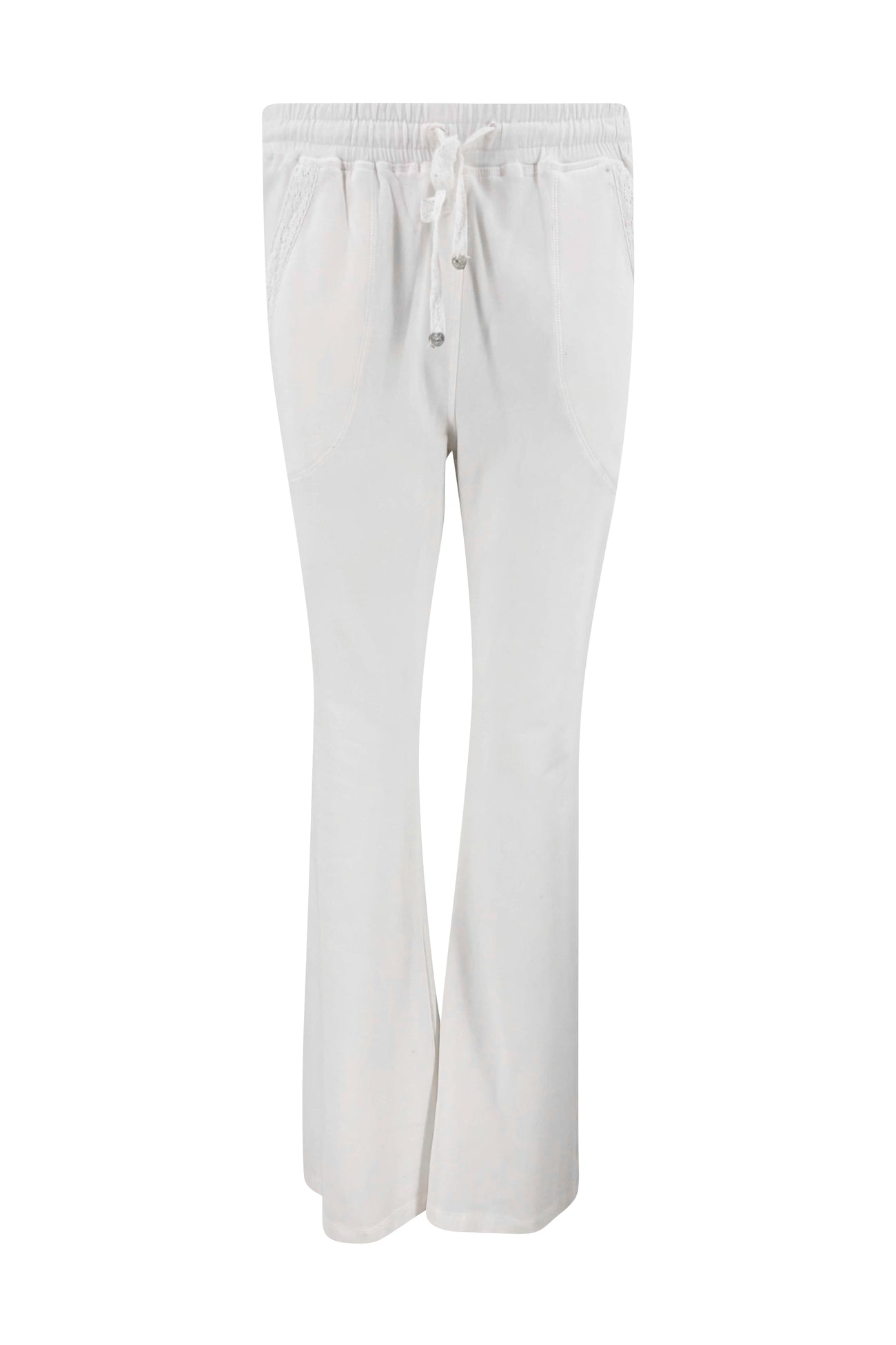 Combineer deze cream jogging broek dames met een witte blouse voor een frisse look. Of draag haar met een denim jacket voor meer contrast. Binnen Isla Ibiza draait het om comfort met karakter, en deze broek sluit daar perfect op aan.