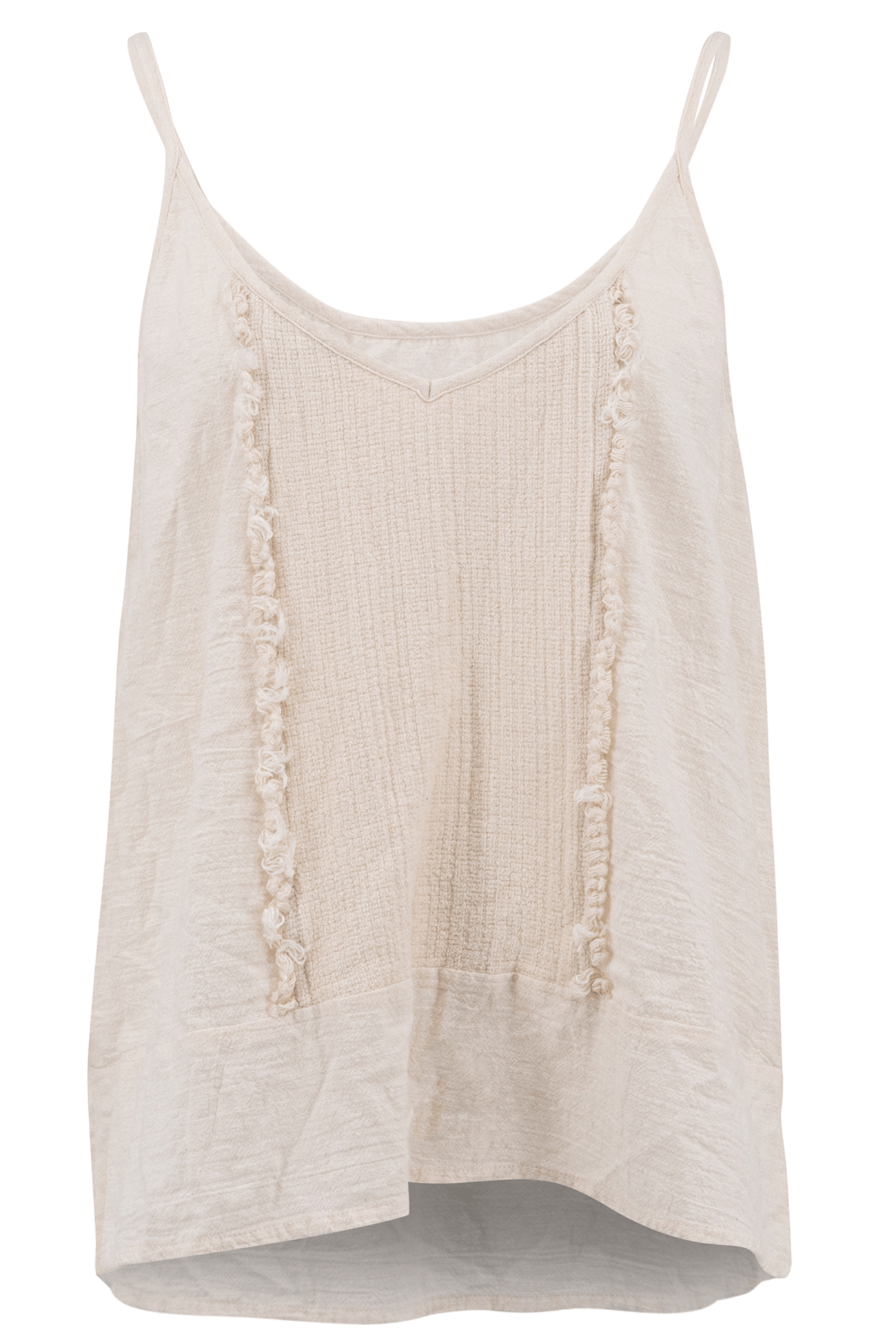 Das Strap Top Lio Ecru von ibzmode in Ecru versprüht Ibiza-Vibes. Es hat einen V-Ausschnitt, verstellbare Spaghettiträger, ist mit Rüschen versehen und weit geschnitten. Das natürliche Material sorgt für ein luftiges Gefühl. Ergänze deine Sommergarderobe mit diesem Must-have.