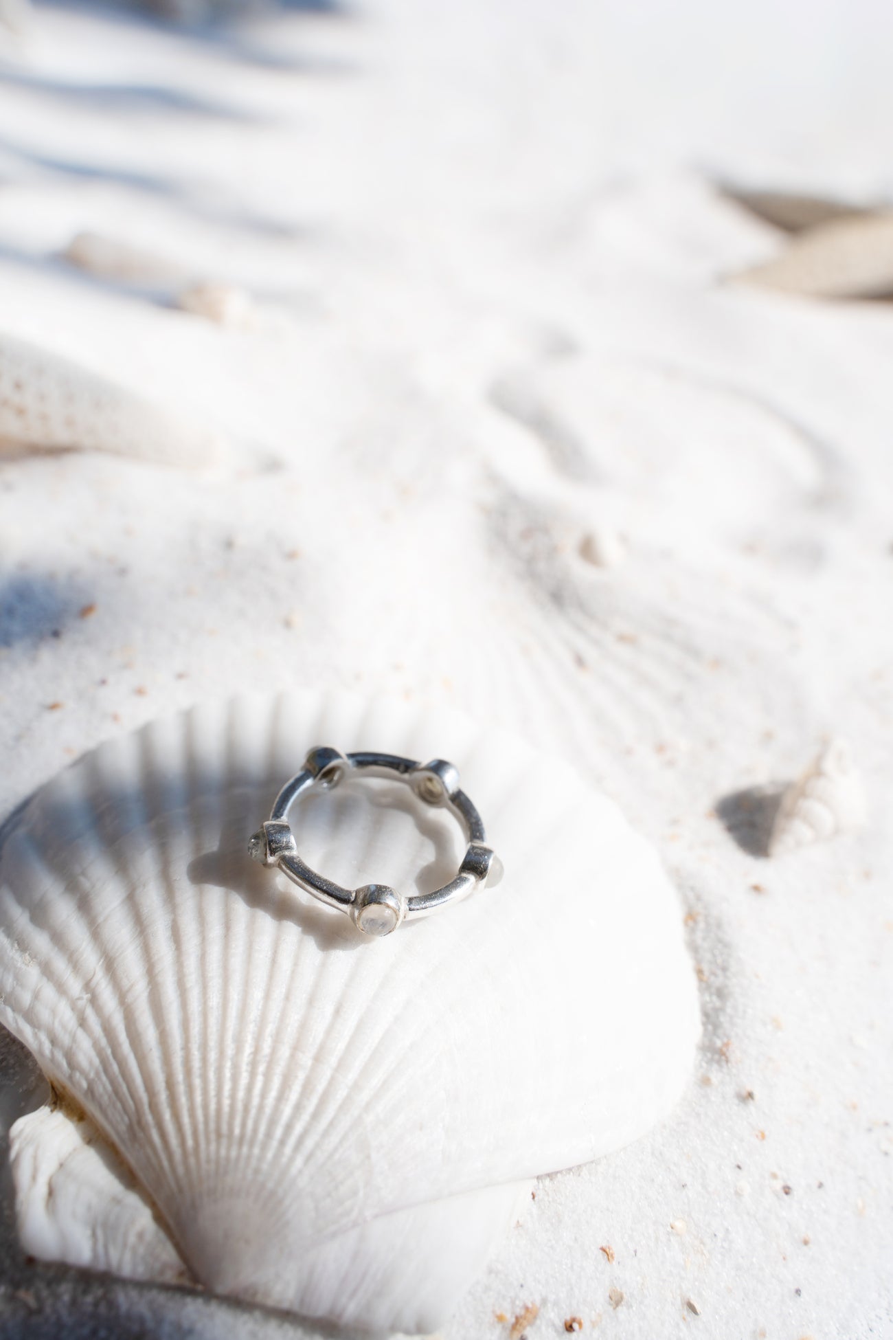 Product gegevens: Der Ring ist mit echtem 925er Sterlingsilber (versilbert) beschichtet und hat echte Natursteinpunkte aus Mondstein. Er wird in einer schönen Geschenkbox geliefertZusammenklappbarer Registerkarteninhalt