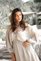 Product gegevens: Langärmeliges Kleid aus weichem Stoff, mit Gummizug in der Taille und am Halsausschnitt. Bitte beachte, dass das Kleid nicht gefüttert ist und daher durchsichtig ist. Wir empfehlen, ein Unterkleid darunter zu tragen,