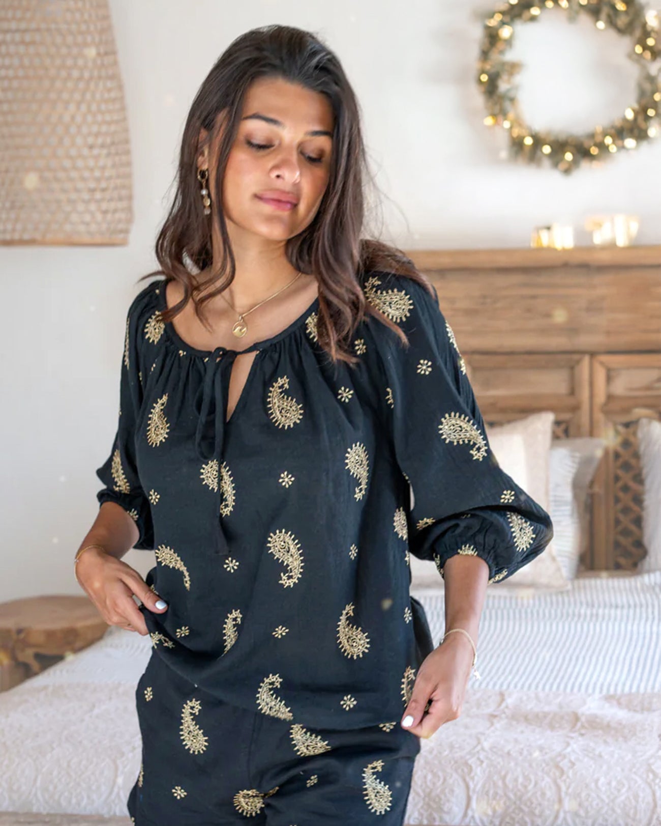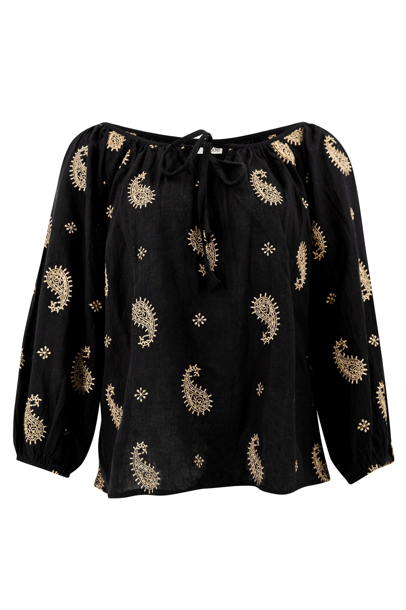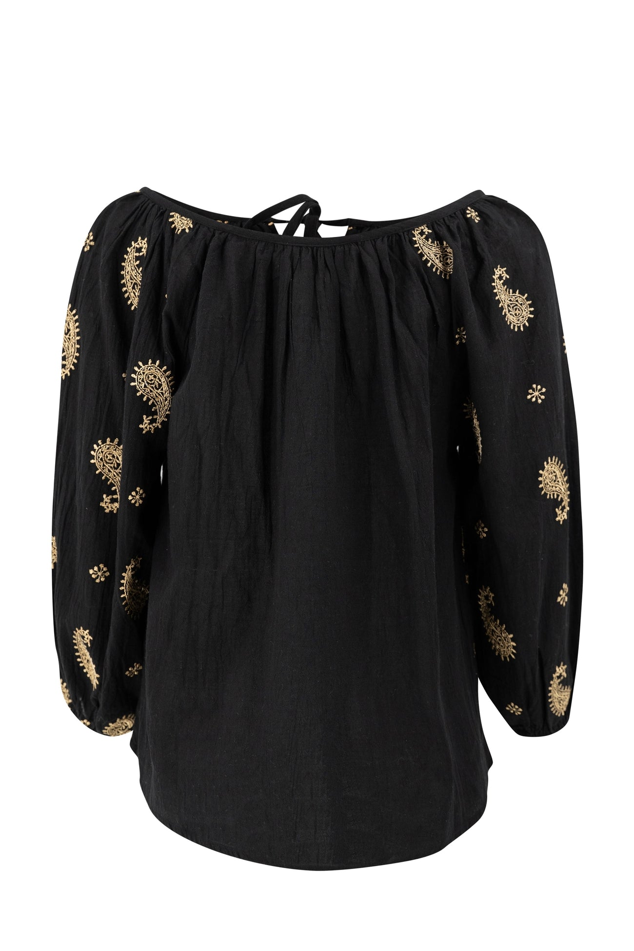 Mit der Bluse Lace Esencia Black von IBZmode bist du für jeden Sommerausflug gerüstet. Die Bluse hat einen Rundhalsausschnitt, der gebunden werden kann, dreiviertellange Ärmel mit Gummizug und lässt sich mit deinen Lieblingsaccessoires zu einem echten Ibiza-Look kombinieren. Bestelle schnell und genieße den Bohème-Lifestyle jeden Tag.