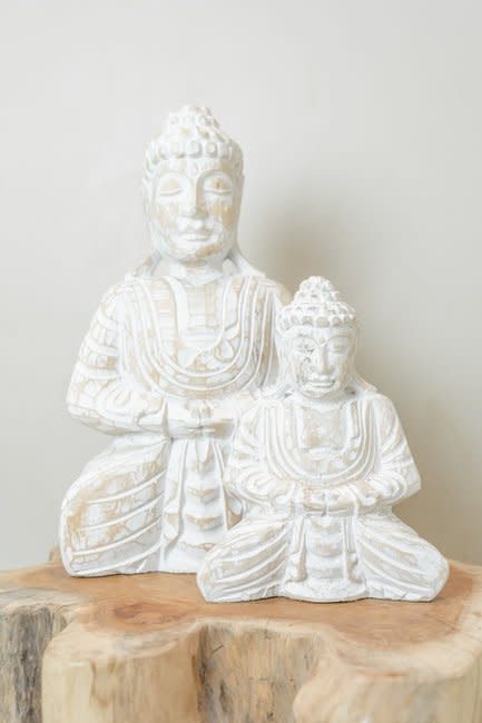 Für eine verträumte Boho-Atmosphäre wählst du die Deko-Statue Buddha. Sie ist in der Farbe Natur gehalten. Kombiniere sie mit neutralen Tönen oder, im Gegenteil, mit bunten Akzenten. Bestelle noch heute und vervollständige dein Styling.