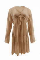Tagsüber strahlt das Kleid Gelassenheit aus. Am Abend gewinnt es an Tiefe und erzeugt einen warmen Schimmer. Dieses Sommerkleid von Dress Mio Taupe ist perfekt für ein Resort oder einen entspannten Ibiza-Mode-Look.