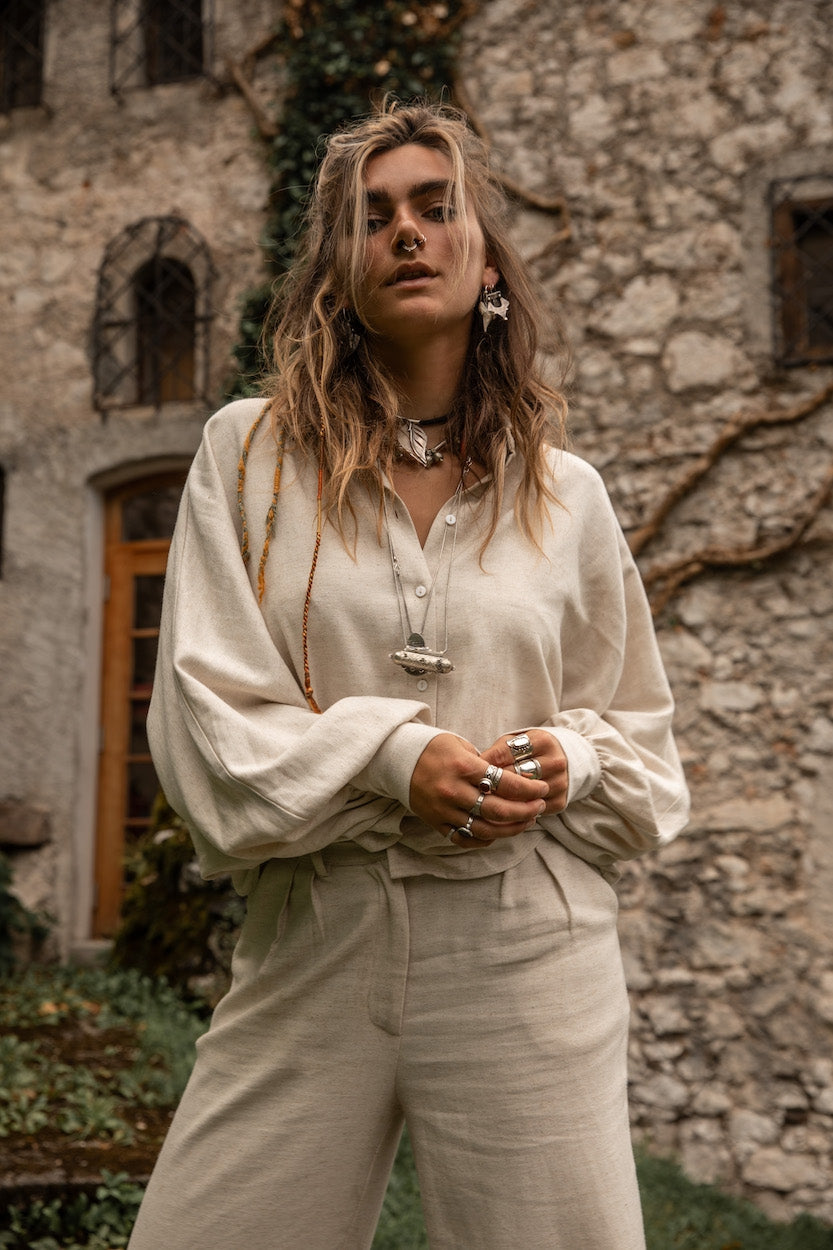 Materiaal: 62% Viscose, 35% Linnen, 3% ElastaanZusammenklappbarer Registerkarteninhalt