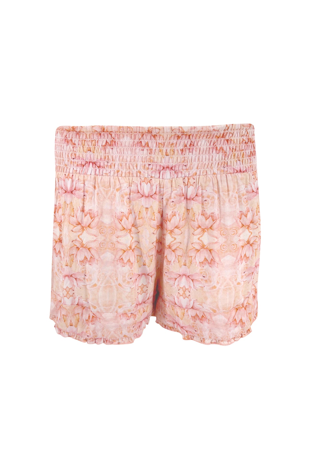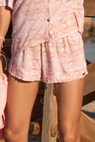Die Shorts „Dorada“ von Isla Ibiza Bonita sind luftige Sommershorts für Damen mit einem sanften, romantischen Look. Der raffinierte Druck in warmen Pfirsich- und Sandtönen verleiht diesen Shorts sofort ein sonniges Ibiza-Flair.