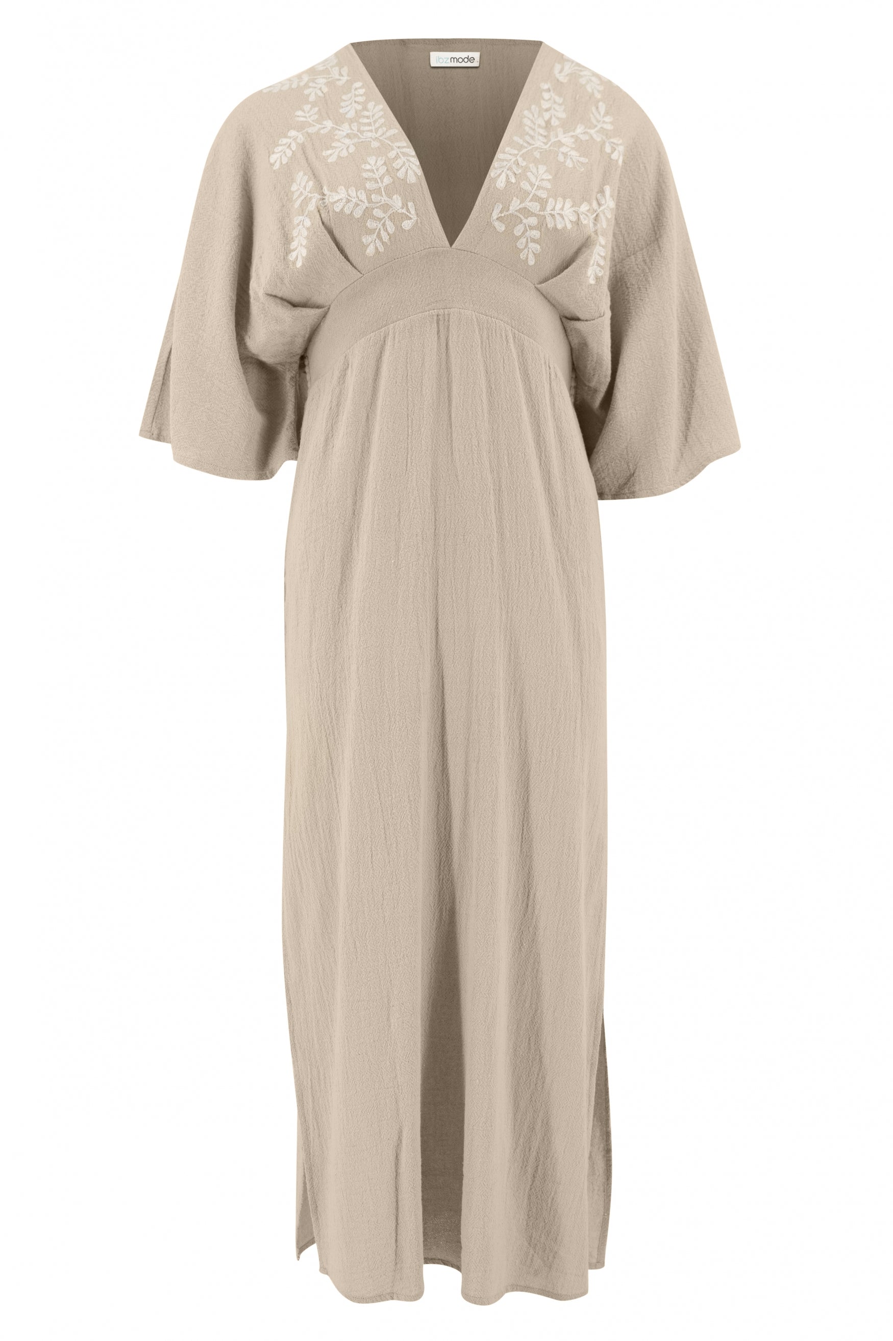 Product gegevens: Long dress with slit, low v-neck and beautiful embroidery, on the back there is elastic bandCollapsible tab content