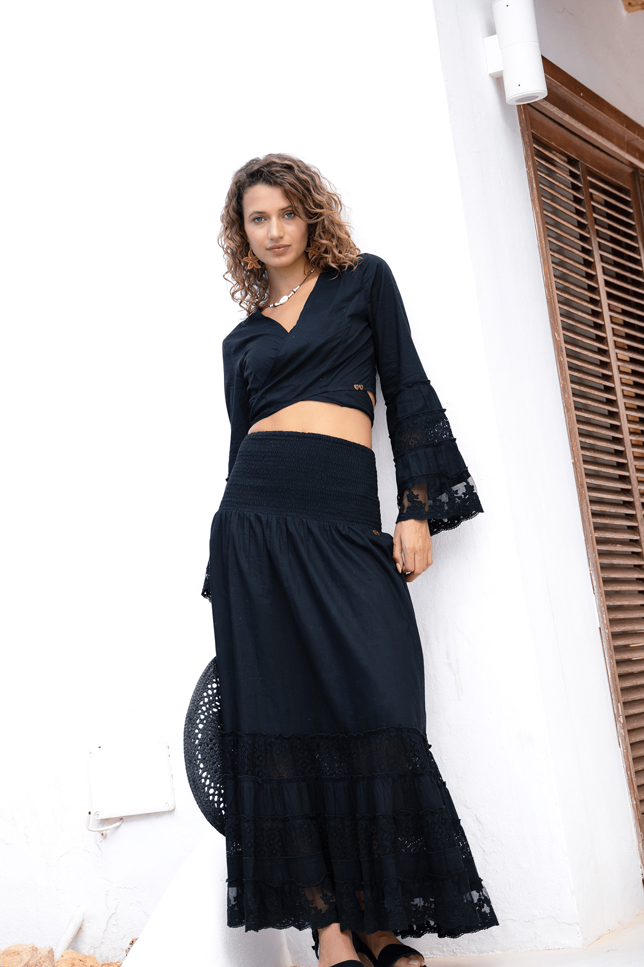 Binnen de stijl van Isla Ibiza Bonita laat deze lange zwarte rok zich moeiteloos combineren met een blouse, singlet of kanten top. Draag haar met sandalen voor een casual bohemian look of combineer met laarsjes voor een meer uitgesproken, vrouwelijke uitstraling. Door het tijdloze kleurgebruik is deze rok eenvoudig te stylen binnen verschillende outfits.