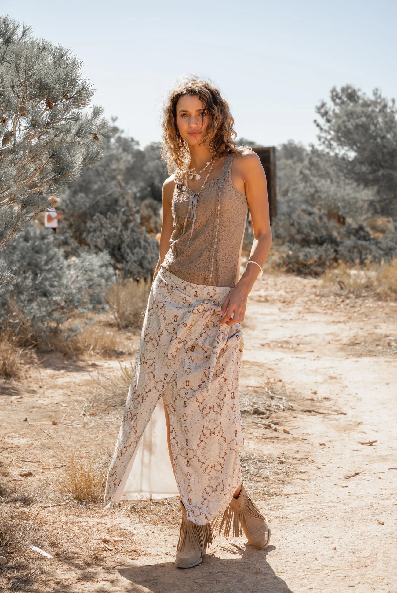 Ibiza style clothing: Dream away to sun, freedom and boho vibes with our Ibiza style clothing. At Ibiza fashion we have from flouncy maxi dresses and romantic tops to leather bags with fringes and boots made of soft suede: this style oozes summer spirit. The Ibiza look originated in the 1960s, when hippies brought influences from distant cultures to the island. Exotic prints, handmade embroideries and mystical jewelry inspired fashion designers worldwide. Today, this free style is still alive and kicking. At Ibizamode you will find more than 75 unique brands that enrich your wardrobe with bohemian flair. Think Moost Wanted, Hot Lava and Jaase - brands that will make you feel like you're in Ibiza every day. Whether it's summer or winter: with the right styling, you can wear Ibiza style all year round.