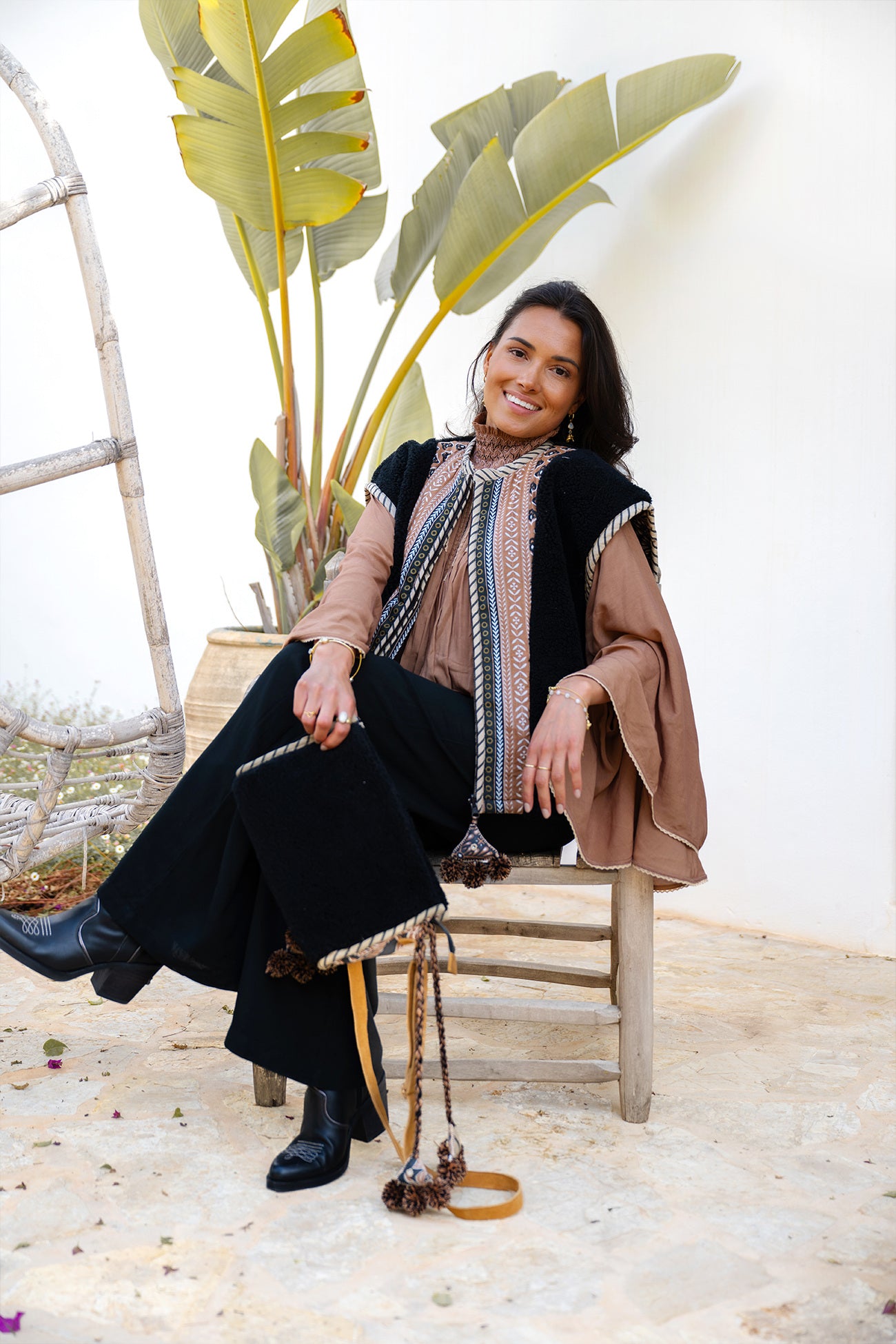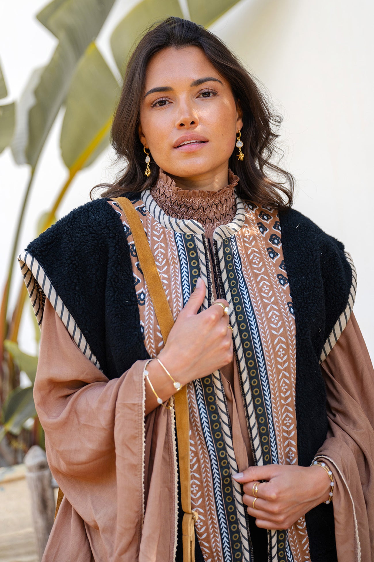 Prepare for the coldest months of the year with the Osito Nómada Gilet Black. With its soft and warm material, this gilet will keep you comfortable and chic whether you're spending the day in town or taking a winter walk. The dark color creates a timeless look that is easy to combine with all kinds of outfits. A must-have for the upcoming season!