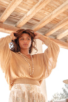 The Blouse Briso Taupe bohemian blouse exudes tranquility and warmth within ibzmode's Golden Glow collection. The soft taupe hue forms a natural base that is easy to combine. Here the emphasis is on silhouette and movement, without sparkle.