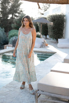 This Dress Madia Baroque Mint Print from ibzmode in pale blue breathes Ibiza vibes. Has thin shoulder straps, lurex yarn details, slightly smocked trim along the bottom Wear it with your favorite accessories for a true brands of Ibiza look. Order quickly and enjoy the bohemian lifestyle every day.