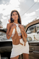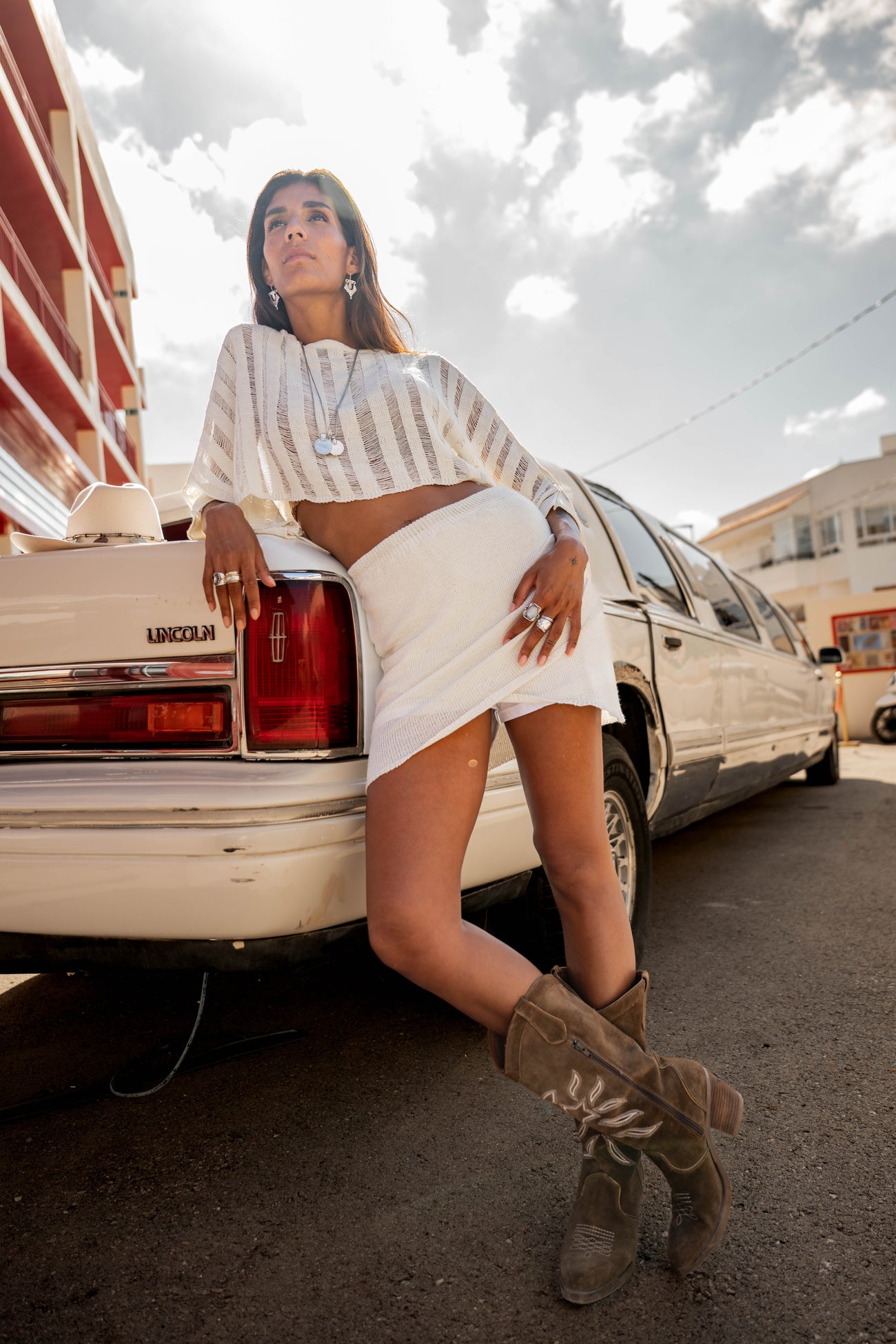 This Milou knitted skirt from MOOST Wanted in off white breathes Ibiza vibes. Has a bottom on the inside, overlap on the front, elastic waistband Add this must-have to your summer wardrobe.