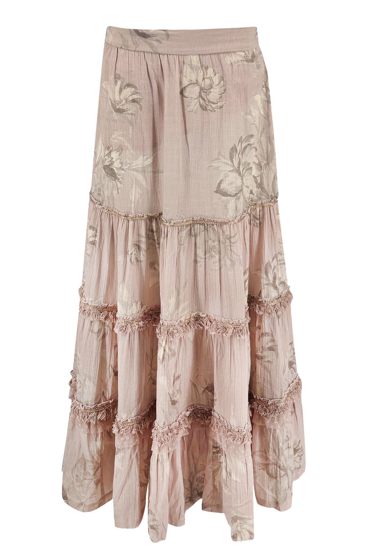 De lichtgewicht stof voelt comfortabel aan en beweegt soepel mee. De elastische tailleband zorgt ervoor dat de dames rok prettig zit gedurende de dag. Kanten details en subtiele afwerkingen geven de rok een verfijnde boho chic uitstraling.