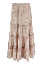 De Skirt Lucia Coralia Old Pink is een veelzijdige dames rok uit de Bohemian Bloom collectie. De zachte roze tint geeft deze dames rok een rustige basis, terwijl de gelaagde ruches zorgen voor een speels en vrouwelijk silhouet. Een ontwerp dat makkelijk te combineren is binnen het mix & match concept.