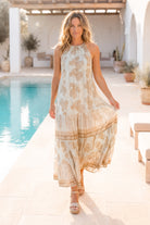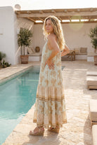 The Strap Dress Madia Solmira Light Mint paisley dress shows how bohemian femininity and subtle glamour come together in one design.