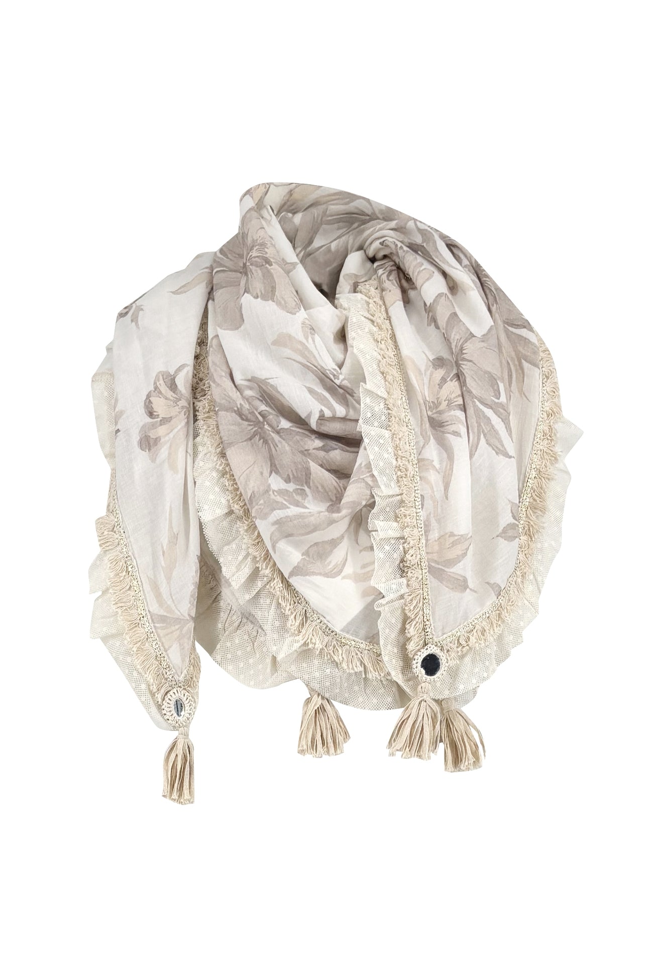 The Scarf Estilo Coralia Ivory is a romantic women's scarf within the Bohemian Bloom collection. The floral print on a soft ivory base gives this ladies scarf a feminine and elegant look.