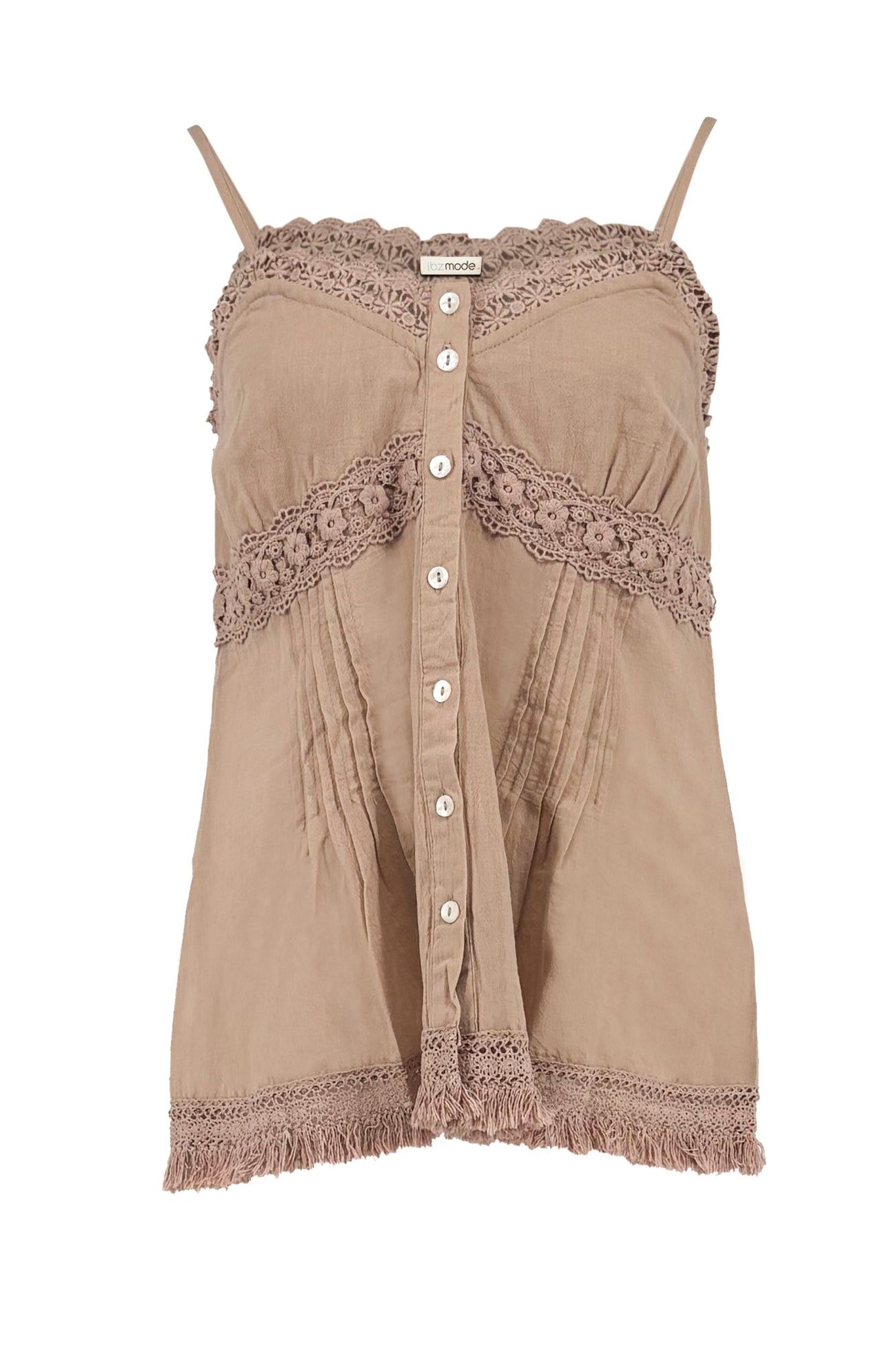 In the evening, wear Strap Top Rosauro Ellis with a maxi skirt or linen pants and booties. Possibly with a kimono or blazer over it for dinner or drinks. This way you don't have to change your clothes and your look remains boho chic and comfortable. If you are looking for a top with lace, button closure and thin straps that you will wear often, Strap Top Rosauro Ellis is a strong addition to your summer wardrobe.