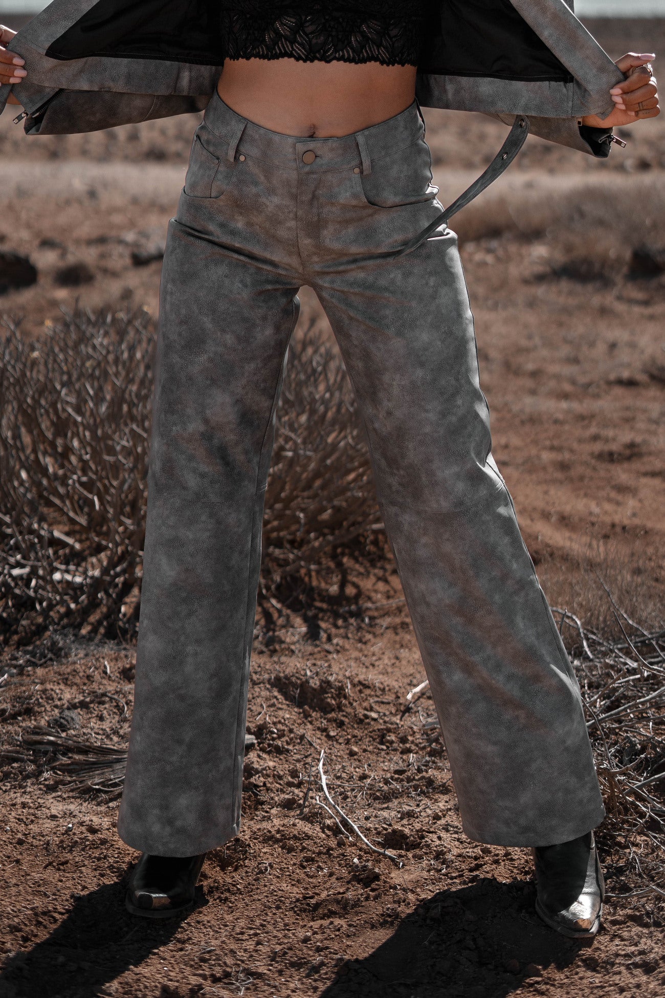 Product gegevens: Made of faux leather, a zipper closure, a washed effect, straight legsCollapsible tab content