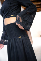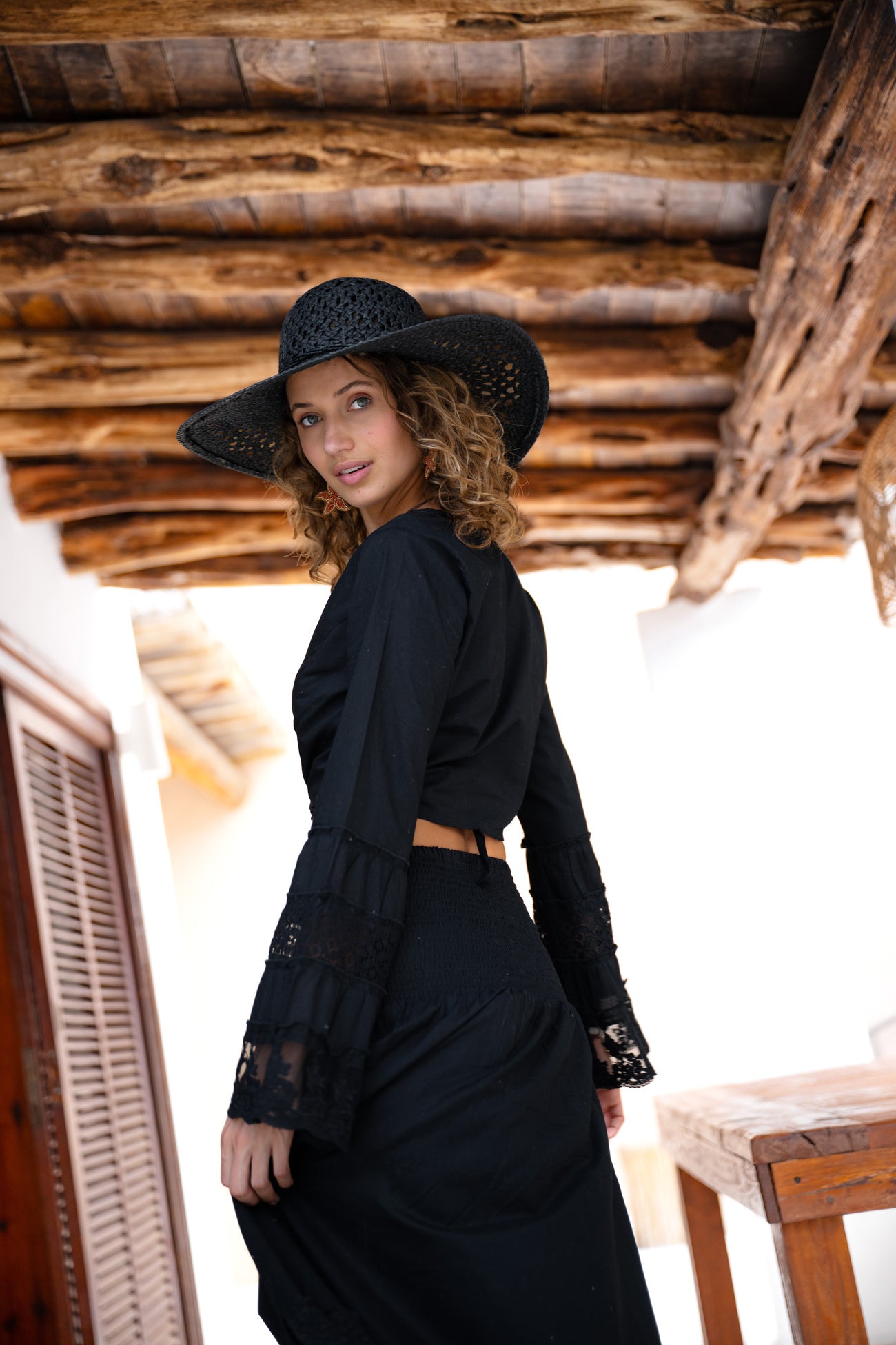Deze zwarte bohemian blouse brengt bohemian zachtheid samen met moderne elegantie. Een statement piece dat kracht uitstraalt, maar altijd vrouwelijk blijft. Dat is precies die balans waar Isla Ibiza Bonita voor staat.