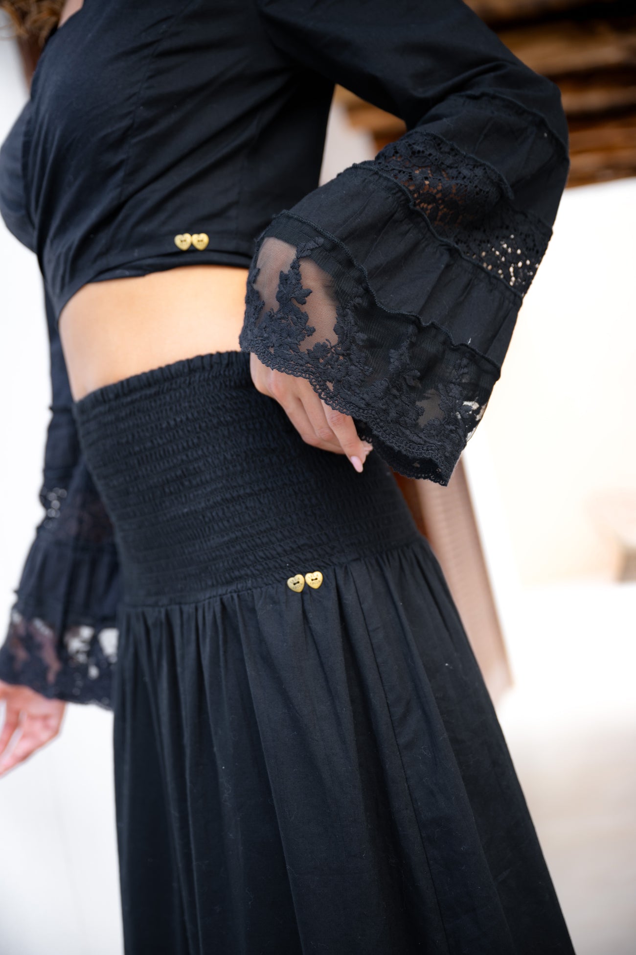 Wat dit model bijzonder maakt, is de combinatie van stoer en zacht. Zwart geeft kracht, terwijl het kant en de fijne stof een vrouwelijke Ibiza vibe toevoegen. Binnen de stijl van Isla Ibiza Bonita combineer je deze zwarte bohemian blouse moeiteloos met een lange rok, een high waist broek of een lichte jeans voor contrast.