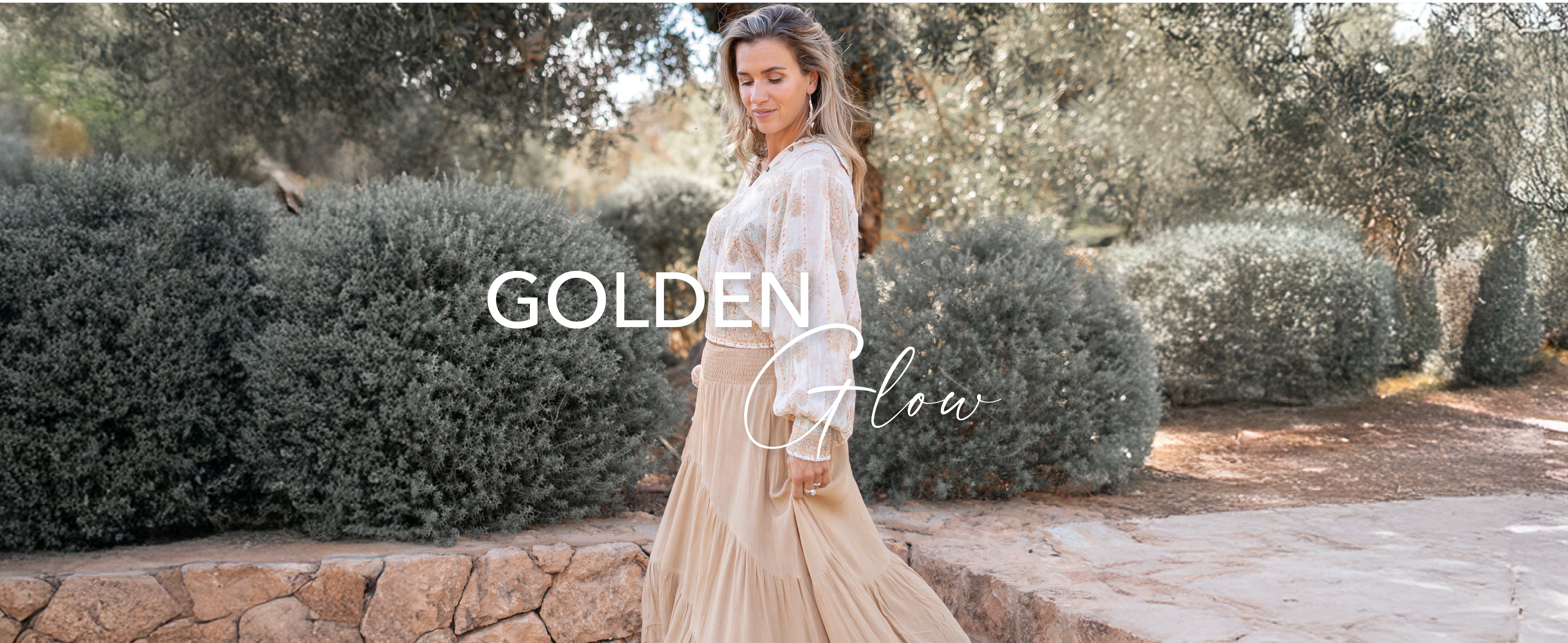 Golden Glow combineert een subtiele sparkle met flatterende fits en natuurlijke tinten.