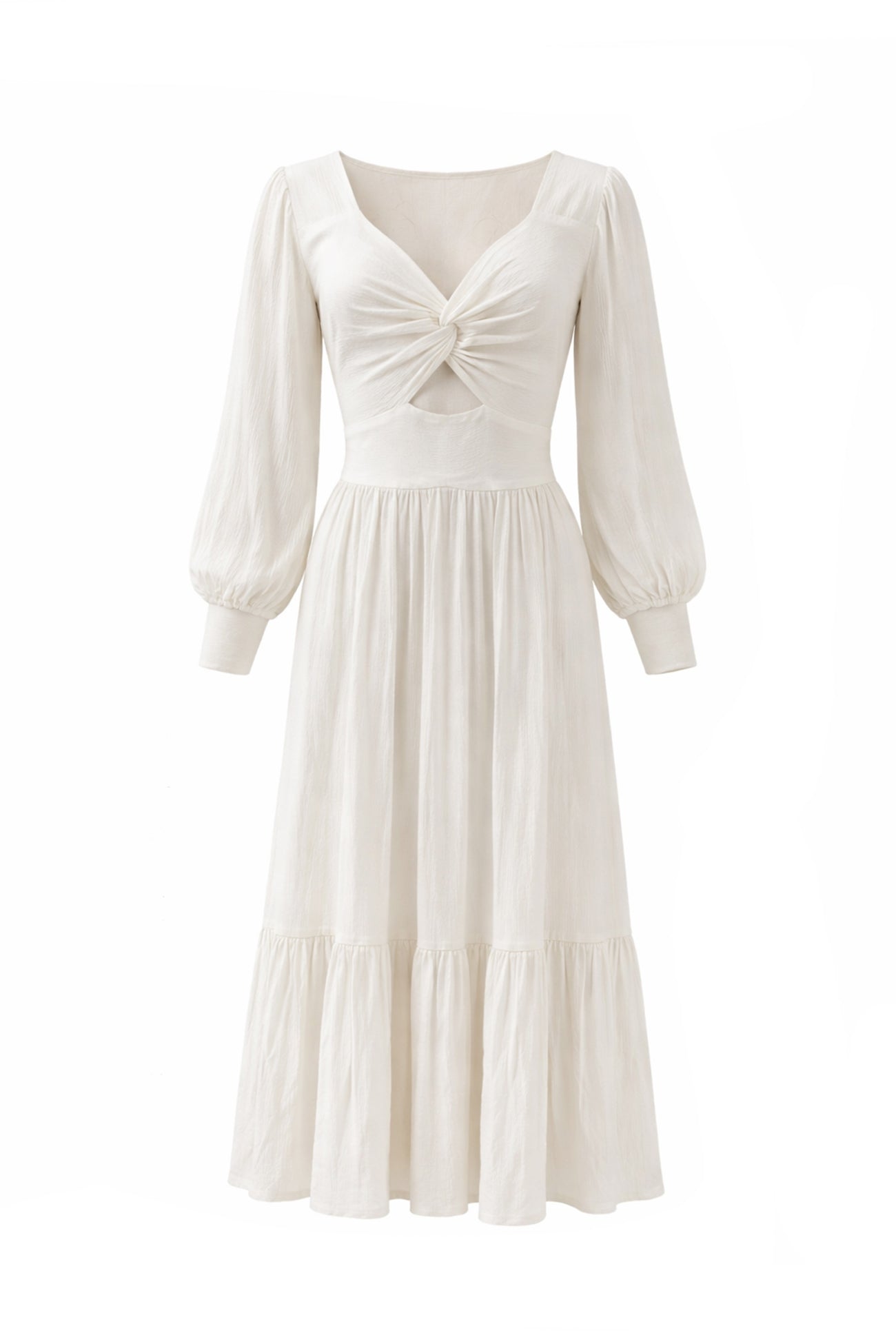 The fabric feels airy and soft on the skin. The model moves smoothly with every step and emphasizes femininity without being tight. This keeps the dress comfortable during warm days and long evenings.