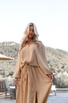 The warm color enhances the natural ibiza vibe of the season. During the day, the dress looks calm and soft. In the evening, the silhouette remains powerful with its simple hue and fluid fit. The Dress Solenya Taupe bohemian dress pairs effortlessly with paisley items from Golden Glow or with light summer hues for a complete resort look.