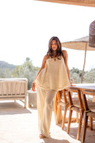 The Zora Auralea Beige pants represent resort wear ladies that is soft to the touch, comfortable and knocks every summer day.