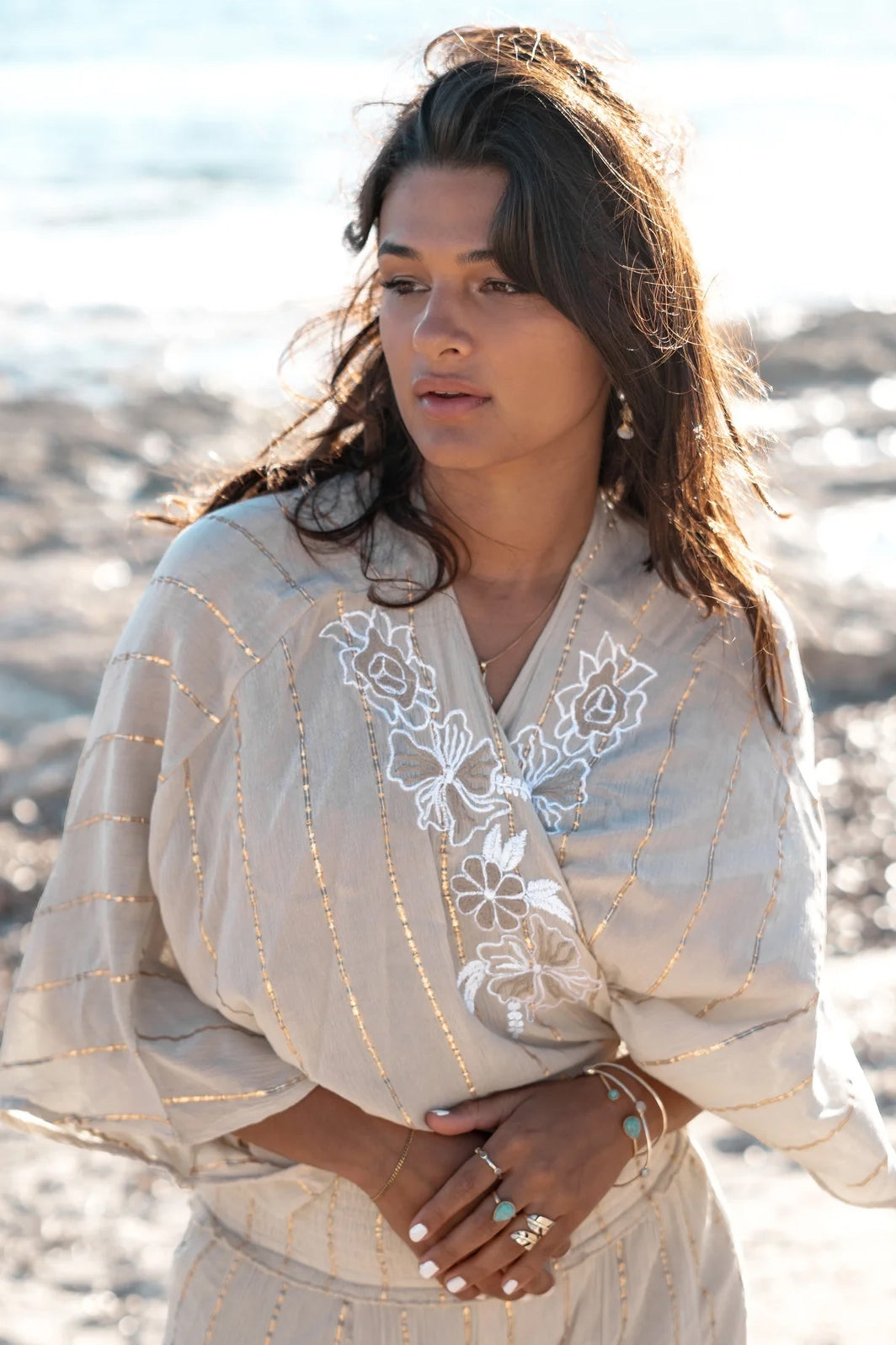 Esta pieza de joyería está hecha de latón y acabada con una capa de auténtica plata de ley 925. Esto le da el brillo de la plata auténtica, a la vez que la mantiene ligera y accesible. Un sofisticado toque final para tu look. Úsala con cuidado: evita el agua, los perfumes y los detergentes para que la joya conserve su mejor aspecto.