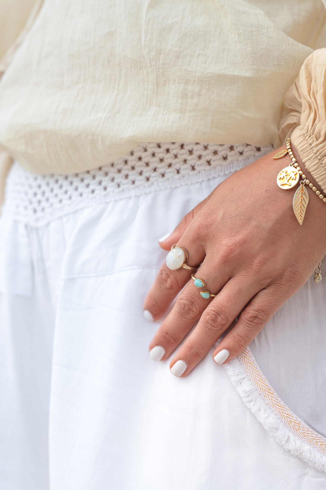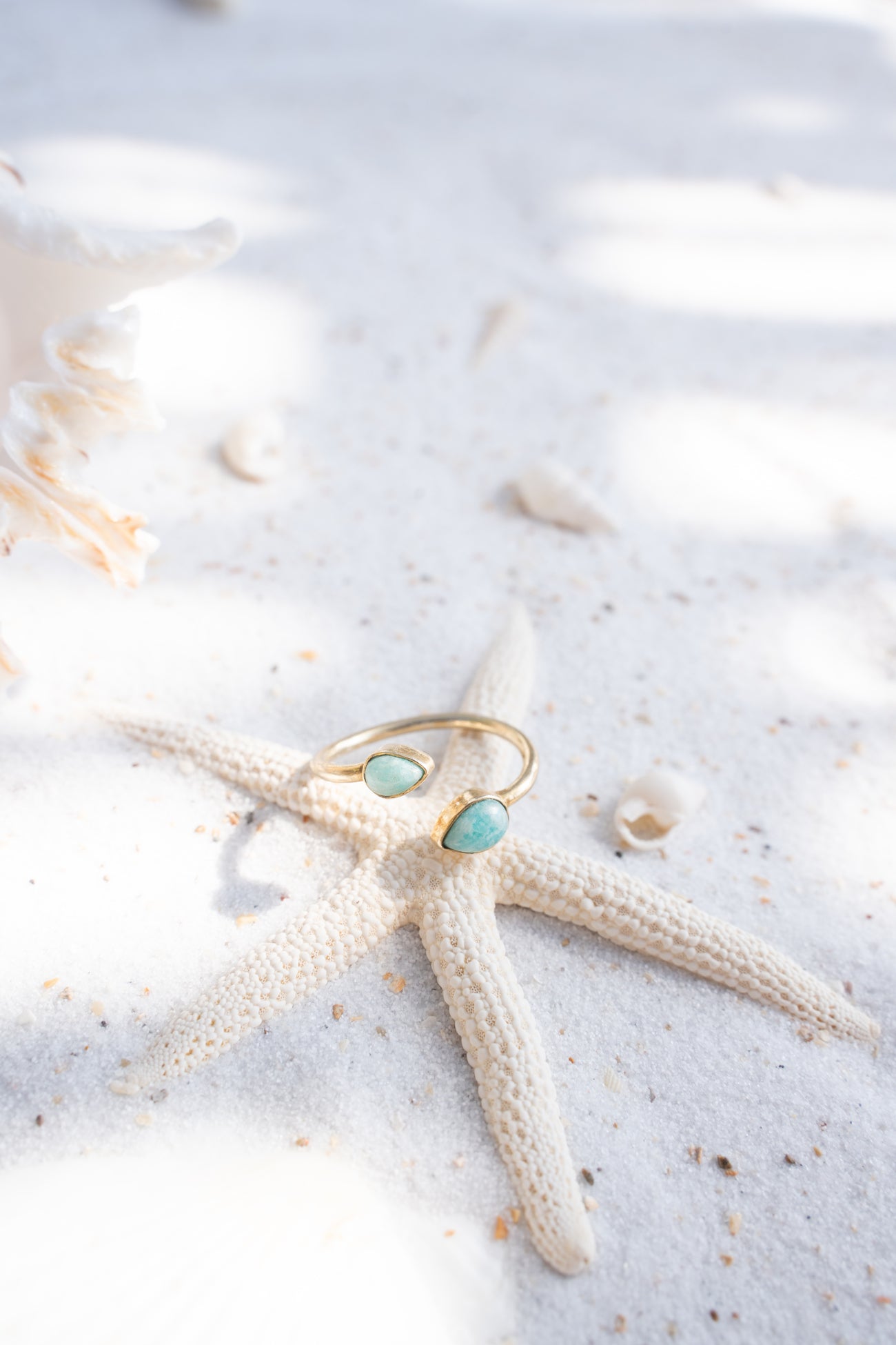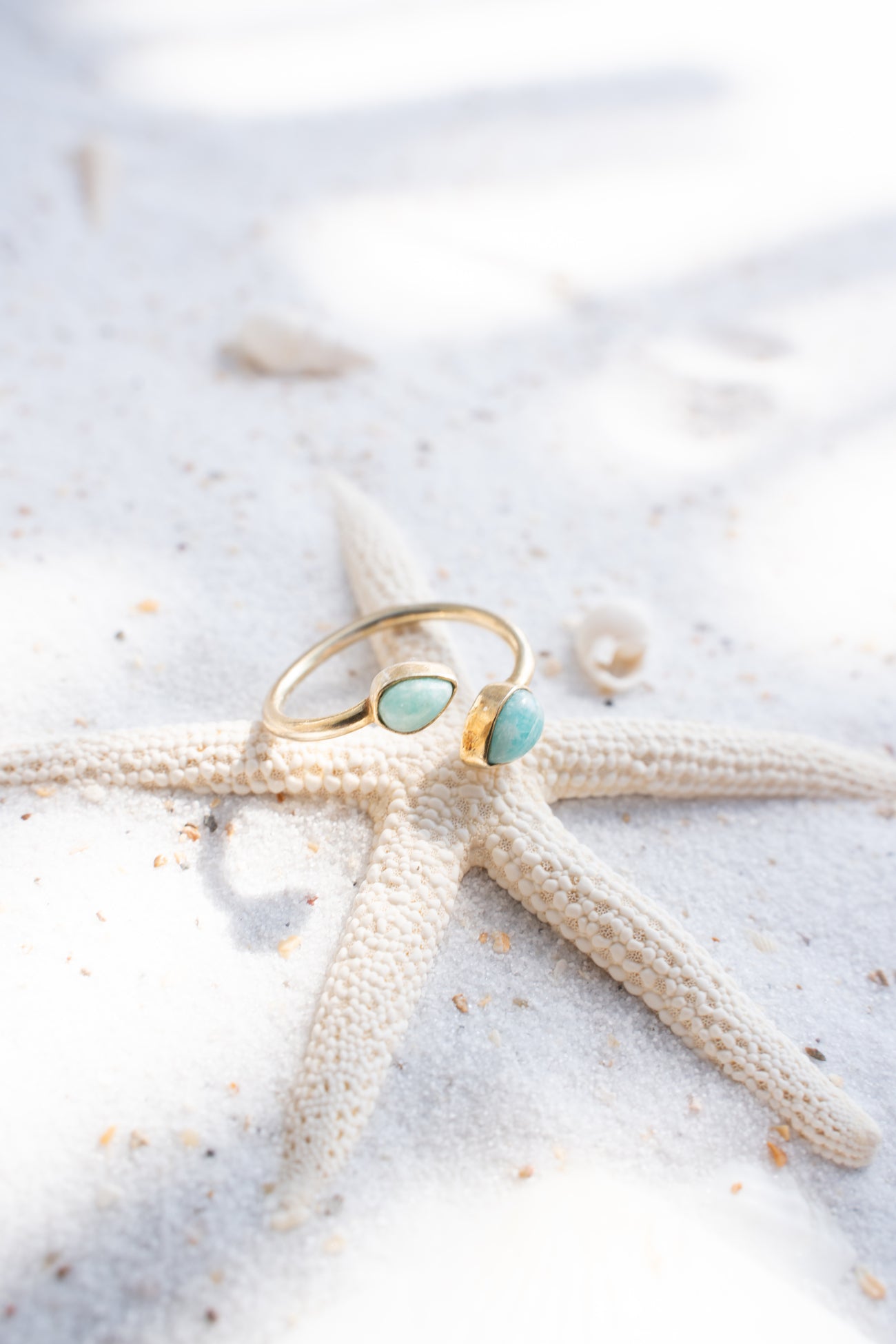 Product gegevens: Latón recubierto de oro auténtico (18K), con Amazonita turquesa de piedra natural auténtica. El anillo se entrega en una bonita caja de regaloContenido de la pestaña plegable