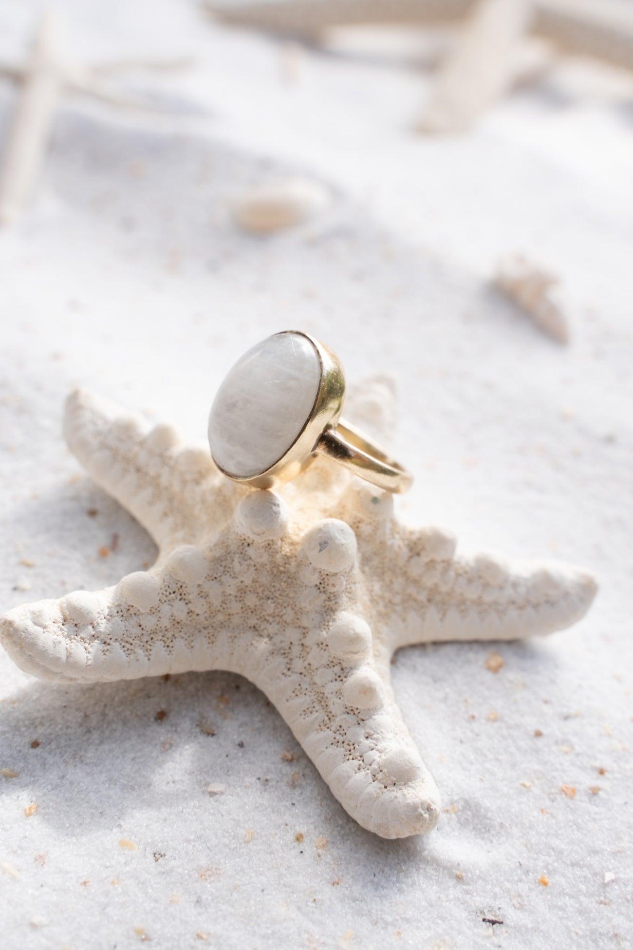 Product gegevens: Revestido de latón con oro auténtico (18K), el anillo lleva una auténtica piedra natural Piedra Lunar. Se entrega en un bonito estuche de regaloContenido de la pestaña plegable